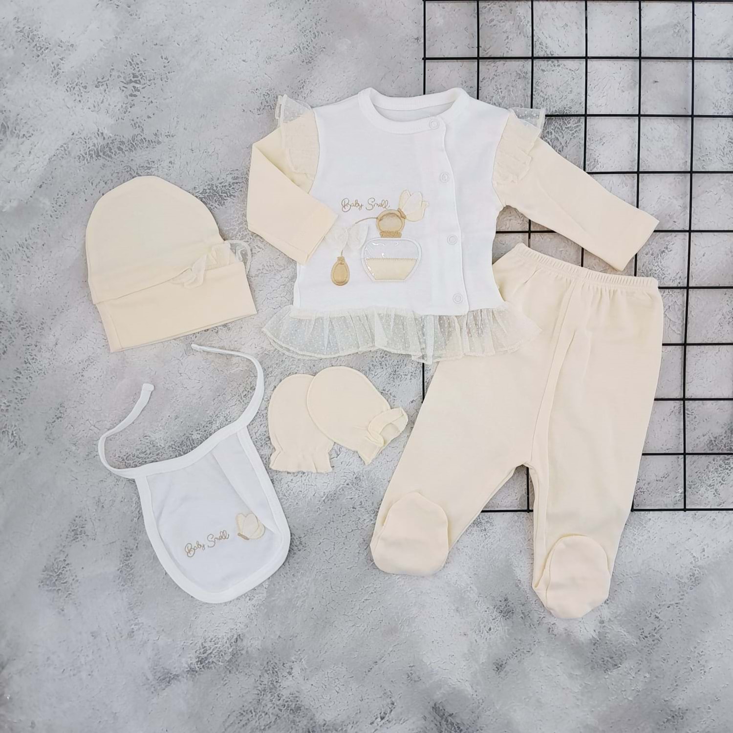 ÇİLEK 8009 PARFÜM NAKIŞLI 5 Lİ YENİDOĞAN TAKIM - KREM - 0-3 AY