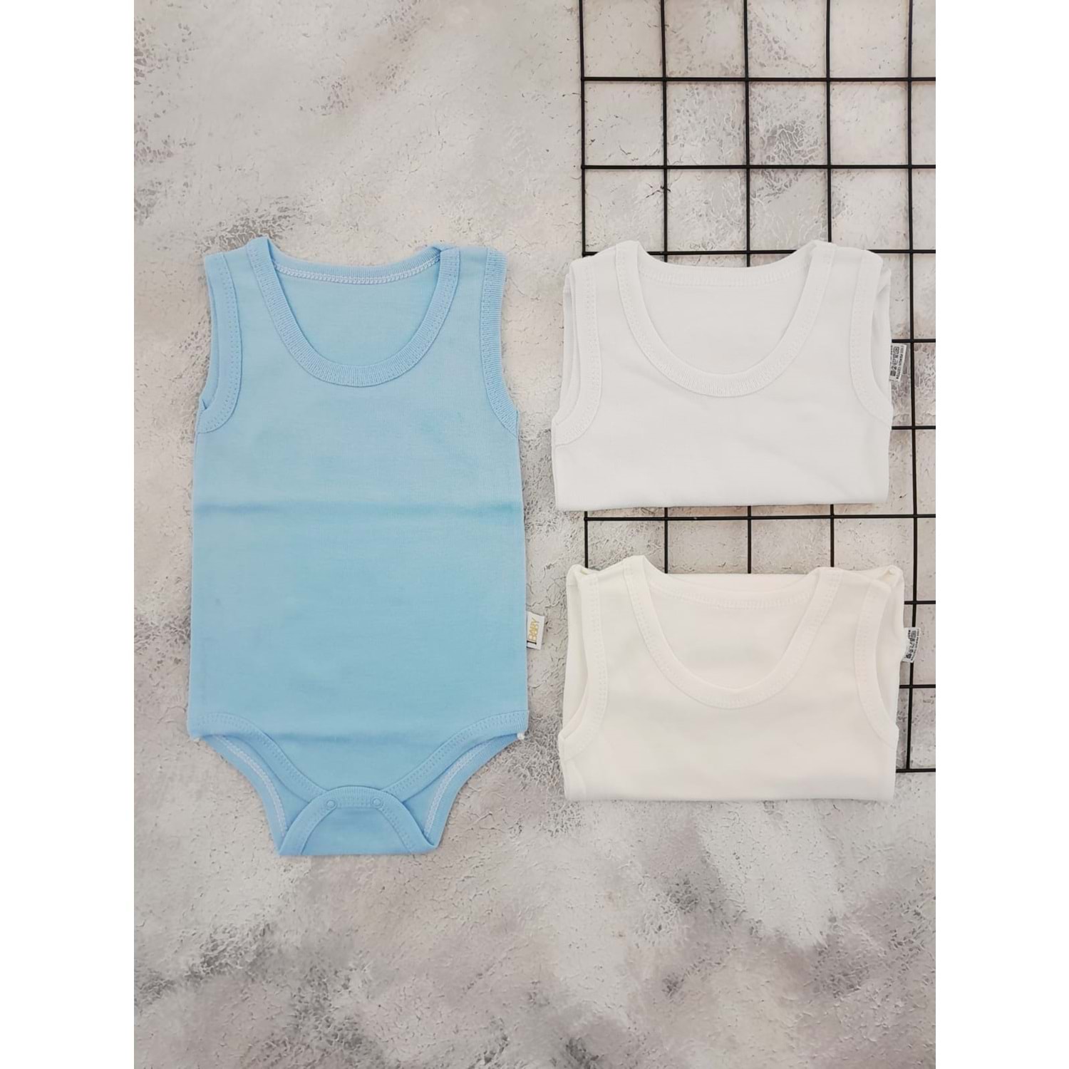 BEBEMER ASKILI 3 LÜ BADİ SET - MAVİ BEYAZ KREM - 18 AY