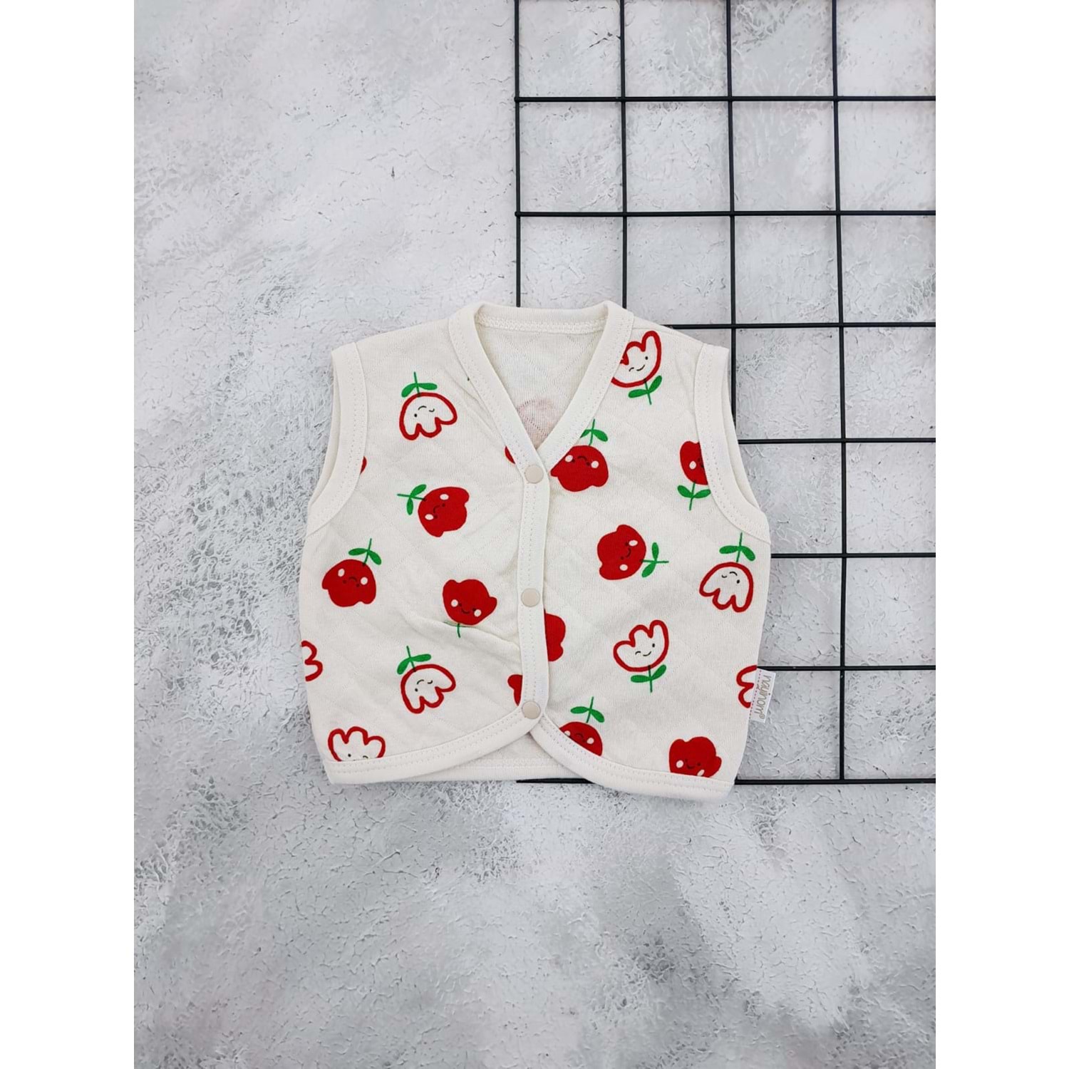 NAYİNOM 0211 LALE BASKILI BEBE YELEK - BEJ - 0 AY