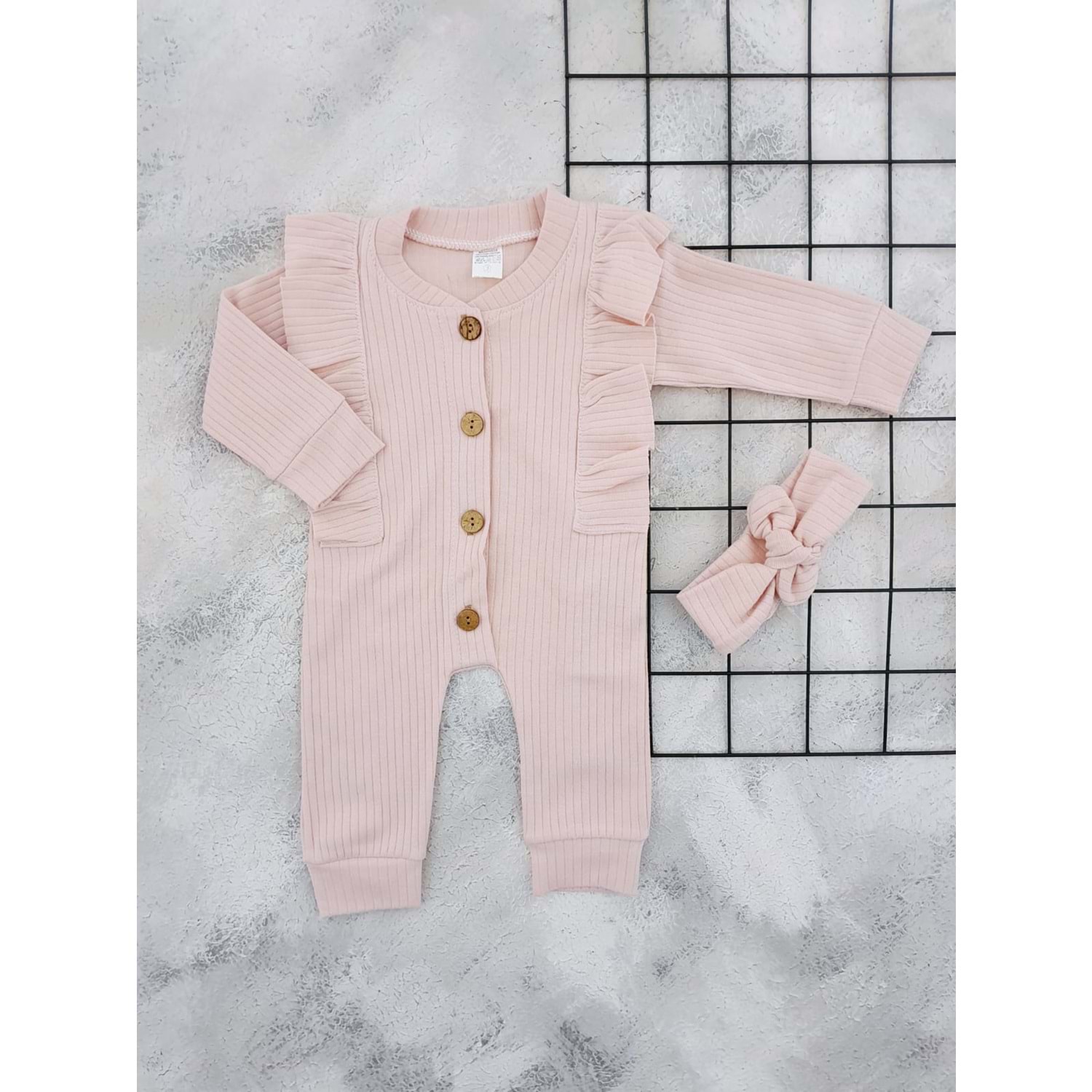 BABYMED 1460 FIRFIRLI BANDANALI MANŞETLİ TULUM - PUDRA - 9 AY
