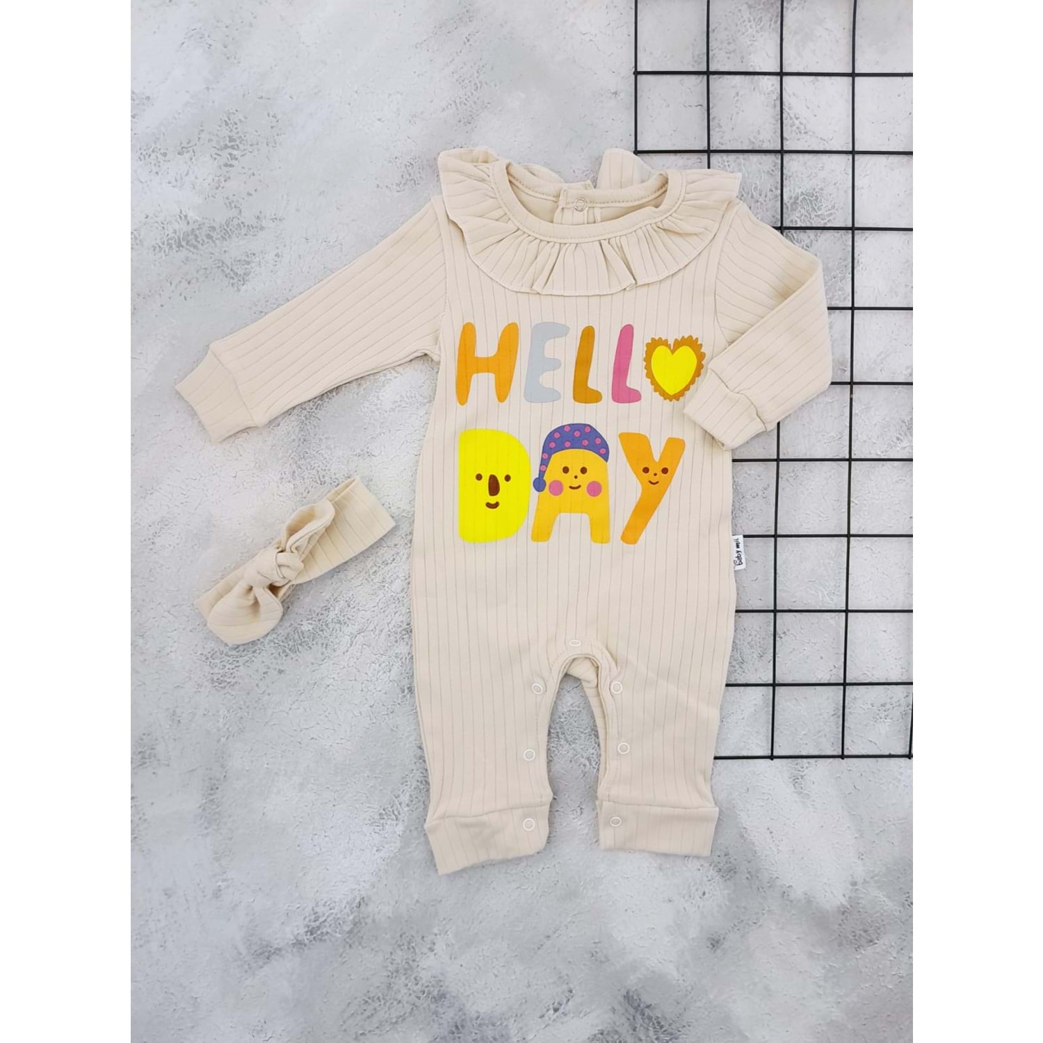 BABYMİİ 0236 HELLO DAY BASKILI MANŞETLİ TULUM - BEJ - 9-12 AY