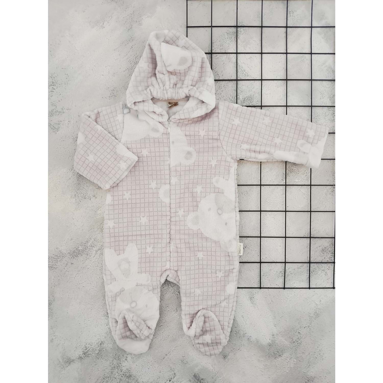 BEBİTOF 70324 AYICIK DESEN PATİKLİ KADİFE TULUM - GRİ - 9-12 AY