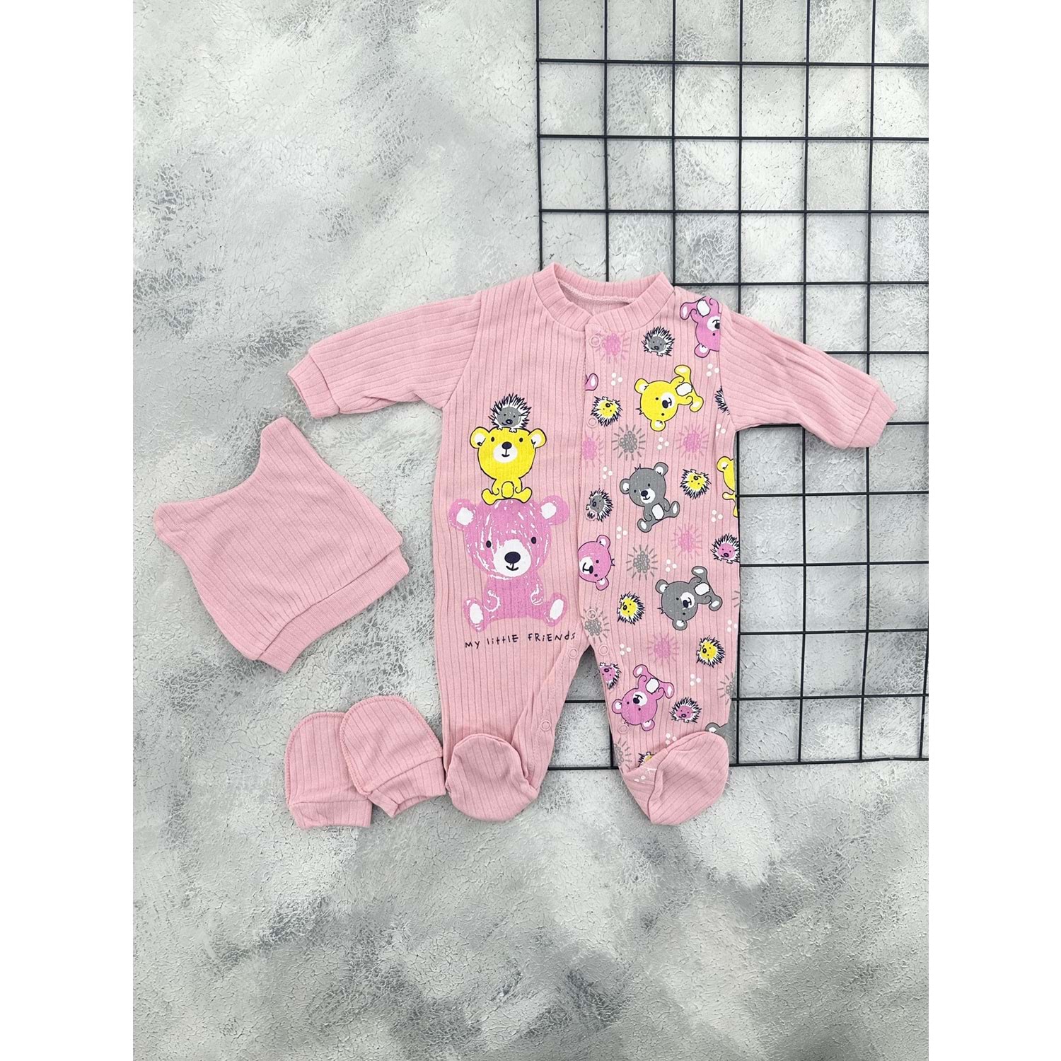 BEYZİ KİDS AYICIKLI TULUM SET - PUDRA - 3-6 AY
