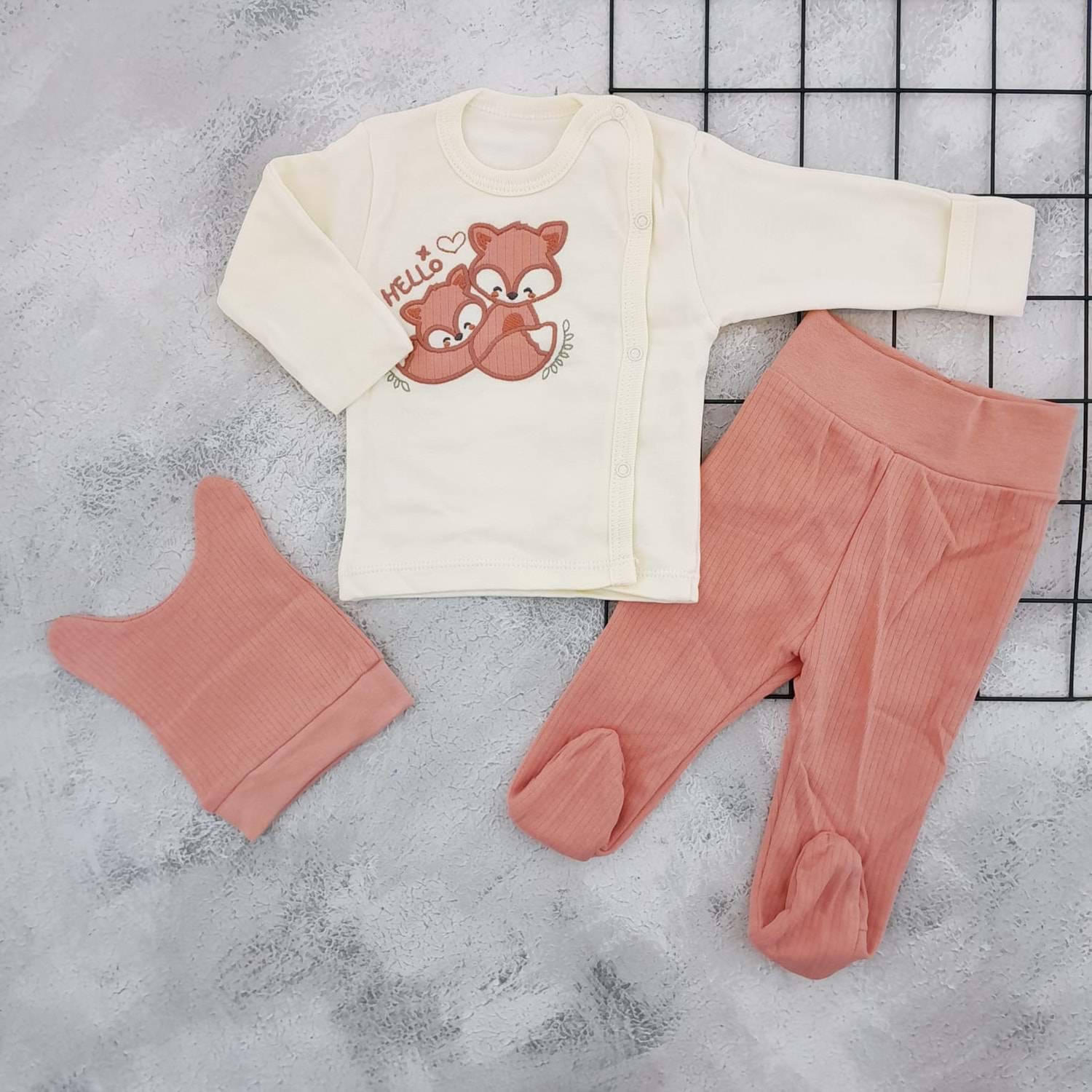 BABYCAN 9384 TİLKİ NAKIŞ 3 LÜ ZIBIN TAKIM - MÜRDÜM - 0-3 AY