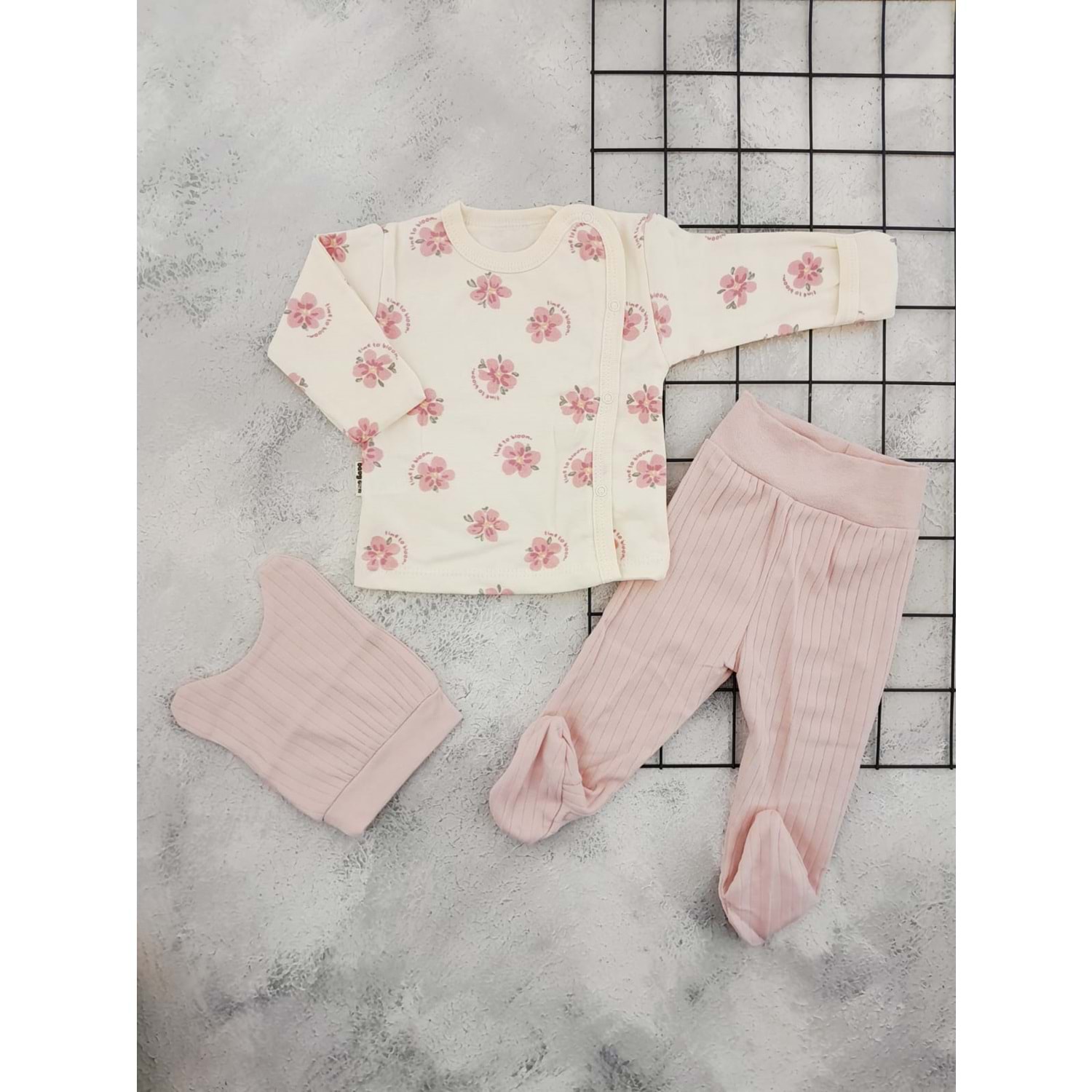BABYCAN 9421 ÇİÇEK 3 LÜ ZIBIN TAKIM - MÜRDÜM - 0-3 AY