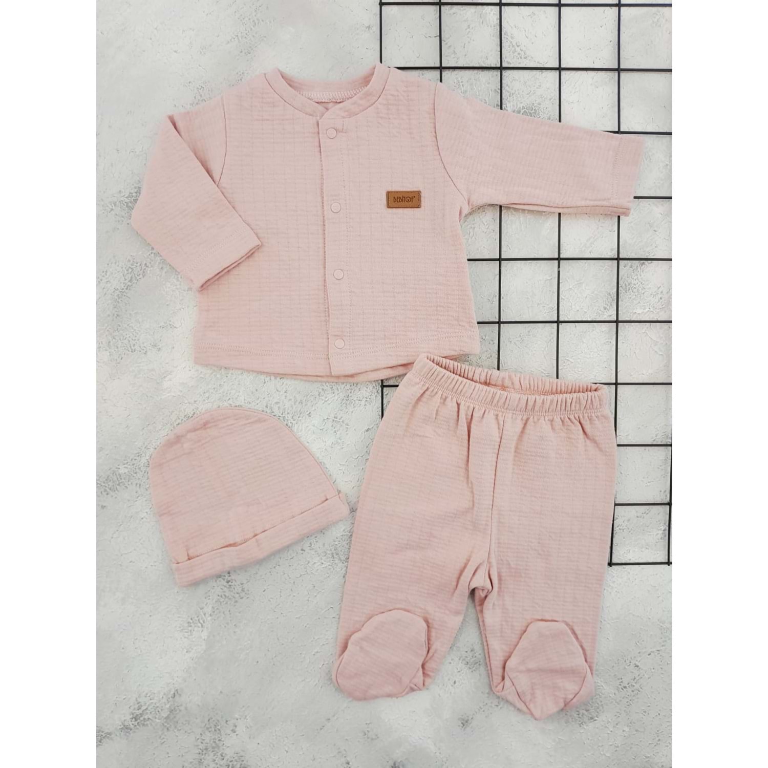 BEBİTOF 80152 AYI ARMALI 3 LÜ TAKIM - PUDRA - 0-3 AY
