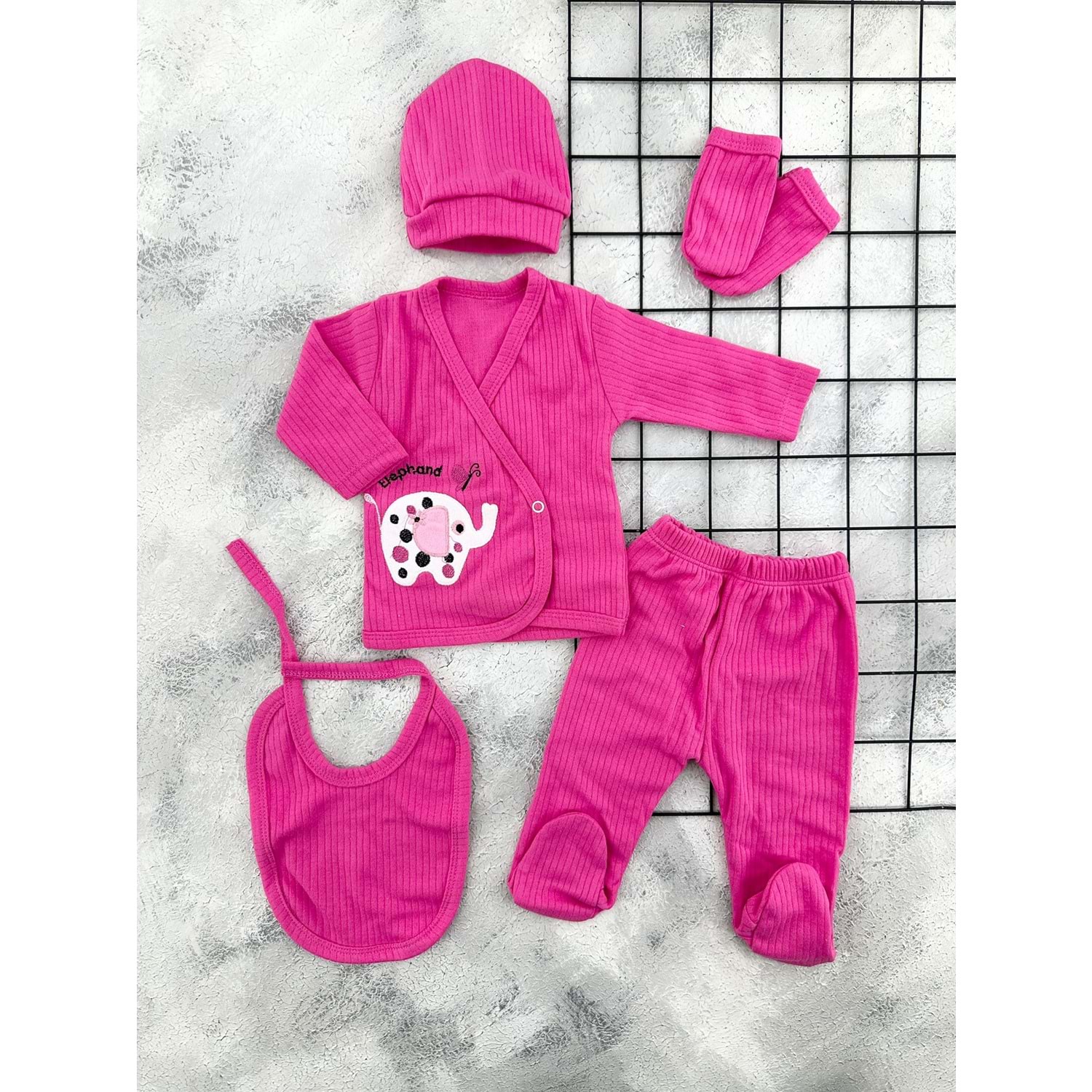 MİNİK 1002 FİL NAKIŞLI 5 Lİ ZIBIN SET - FUŞYA - 0 AY