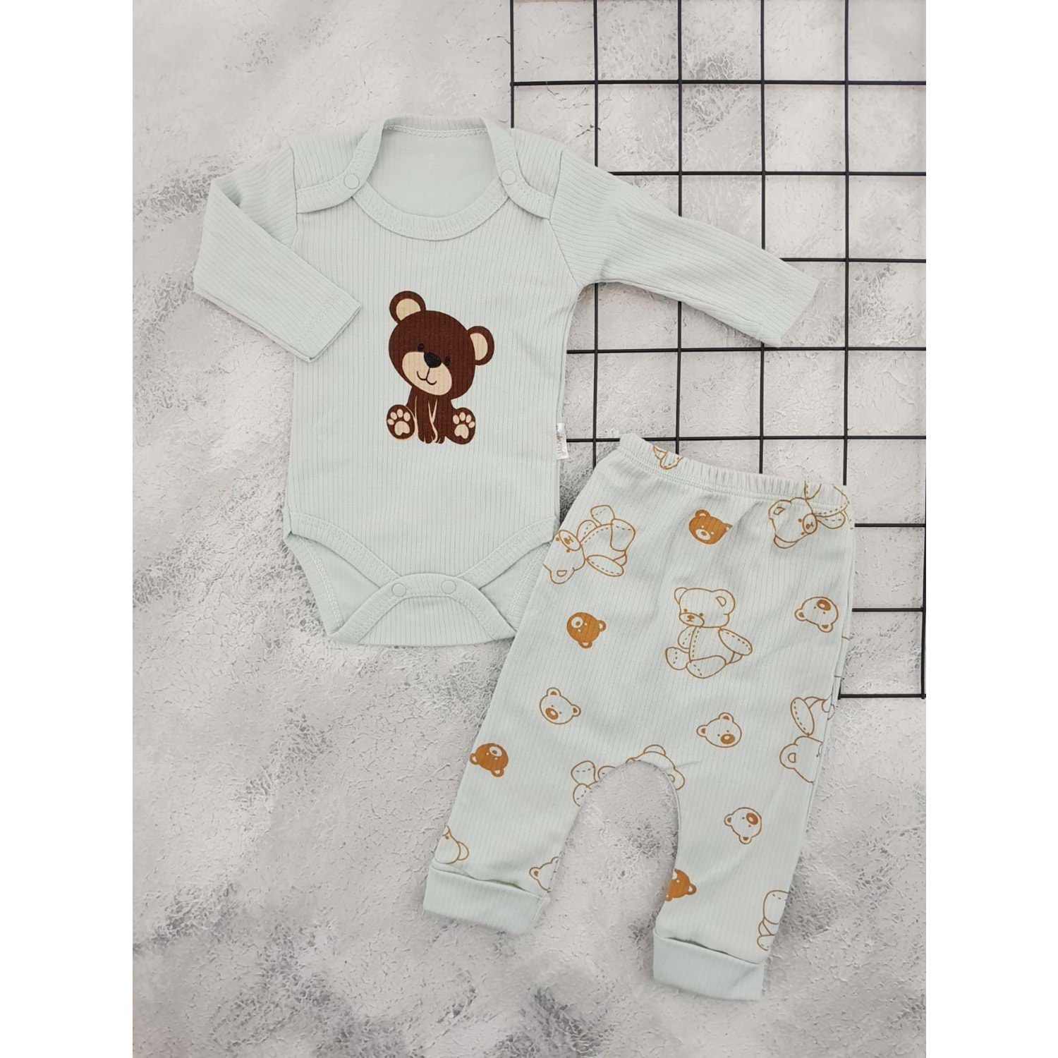 NAYİNOM 2418 AYICIK BASKILI 2 Lİ BADİ TAKIM - YEŞİL - 3-6 AY