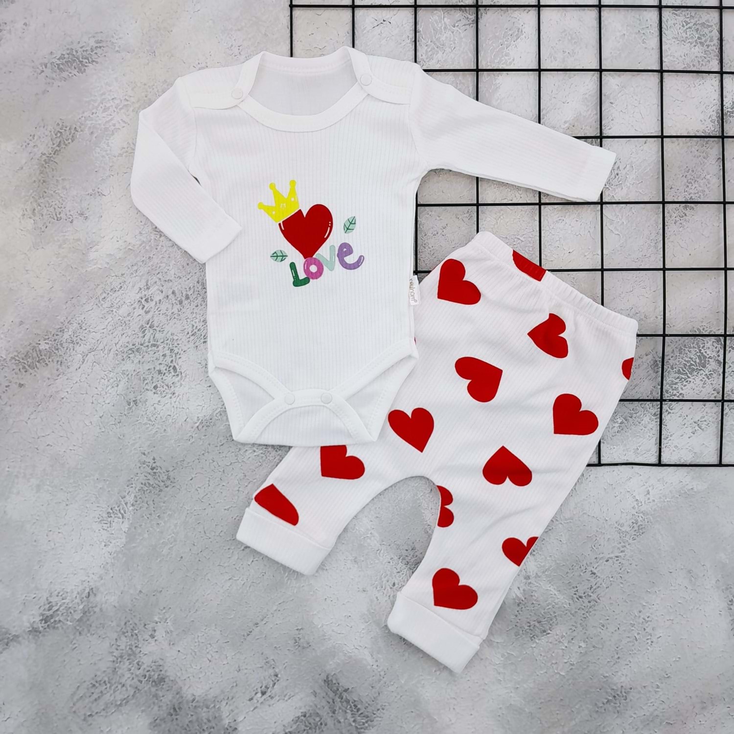 NAYİNOM 2422 KALP BASKILI 2 Lİ BADİ TAKIM - KREM - 0-3 AY