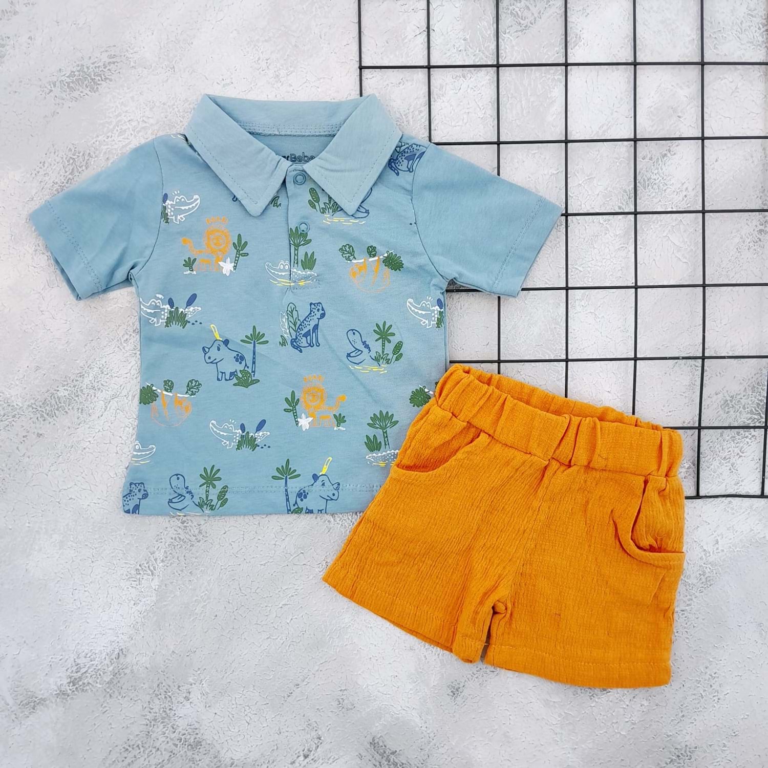NAZAR 25391 HAYVAN BASKILI MÜSLİN ŞORT TAKIM - MAVİ - 9 AY