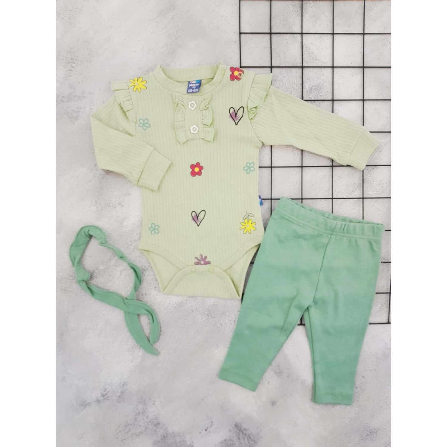 NAZAR 24546 ÇİÇEK BASKILI RAPORLU 3 LÜ TAKIM - YEŞİL - 9 AY
