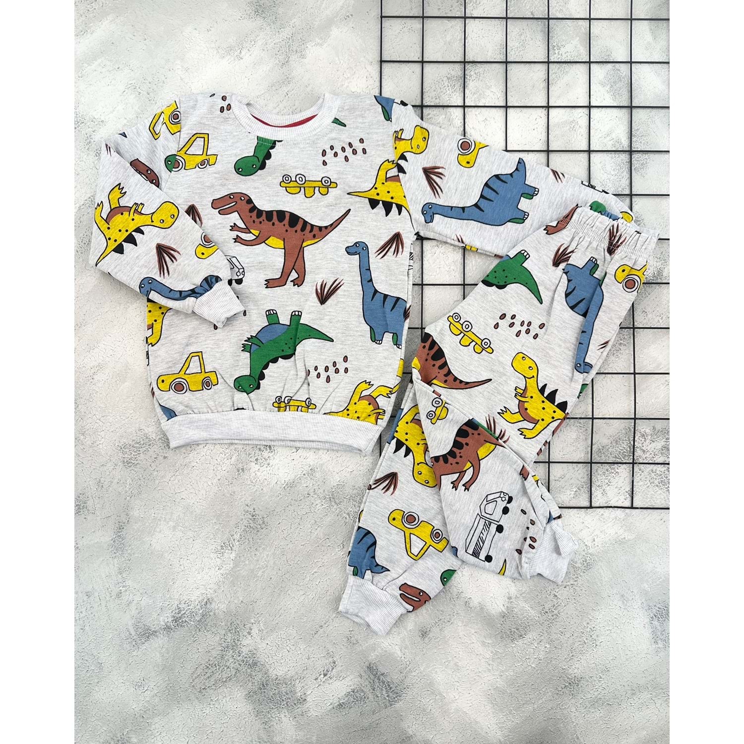 KARAKTERLİ 1705 İŞÇİ DİNO İÇİ PAMUKLU TAKIM - GRİ - 7 YAŞ