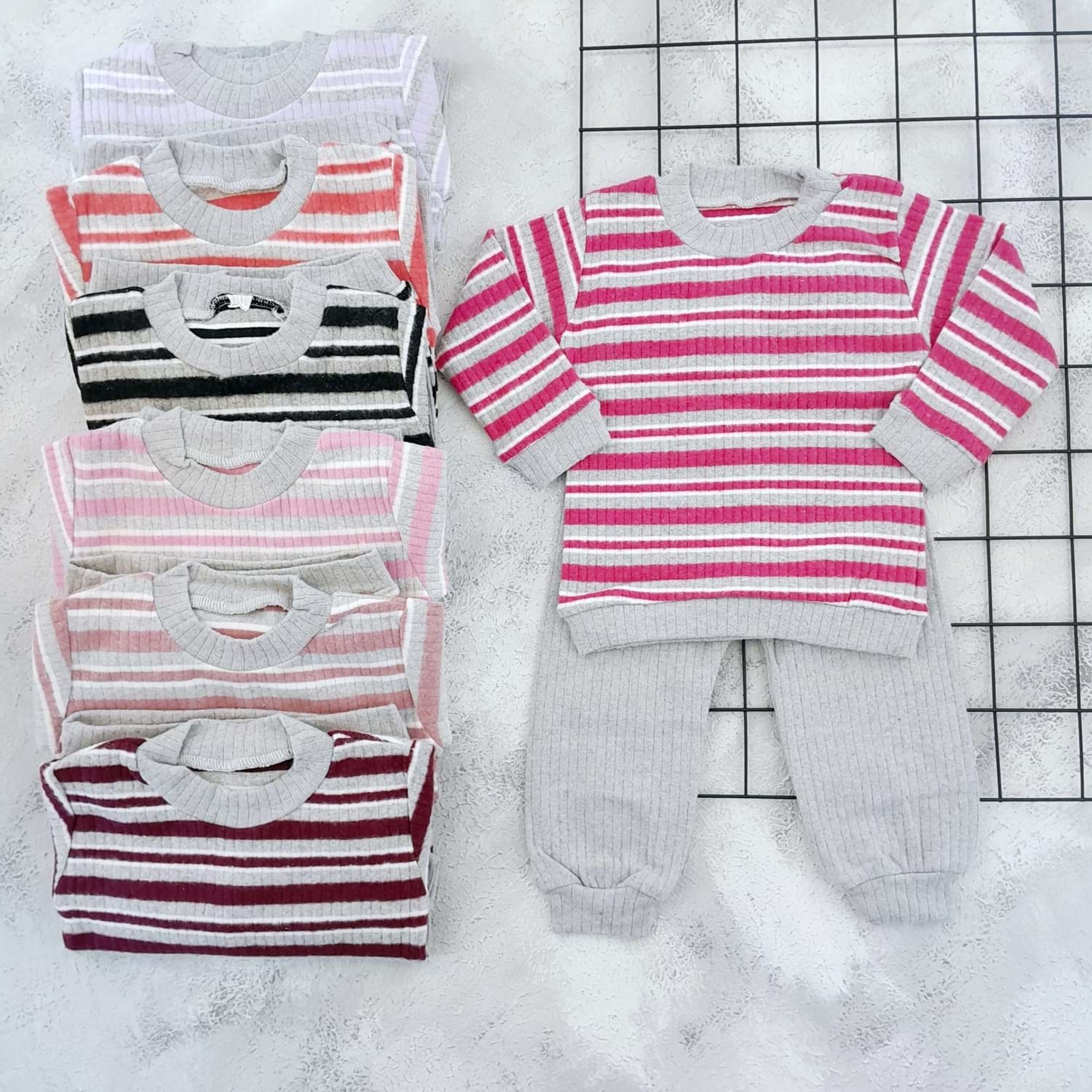 FİTİLLİ RENKLİ ÇİZGİLİ İÇLİK TAKIM - LİLA - 6 AY