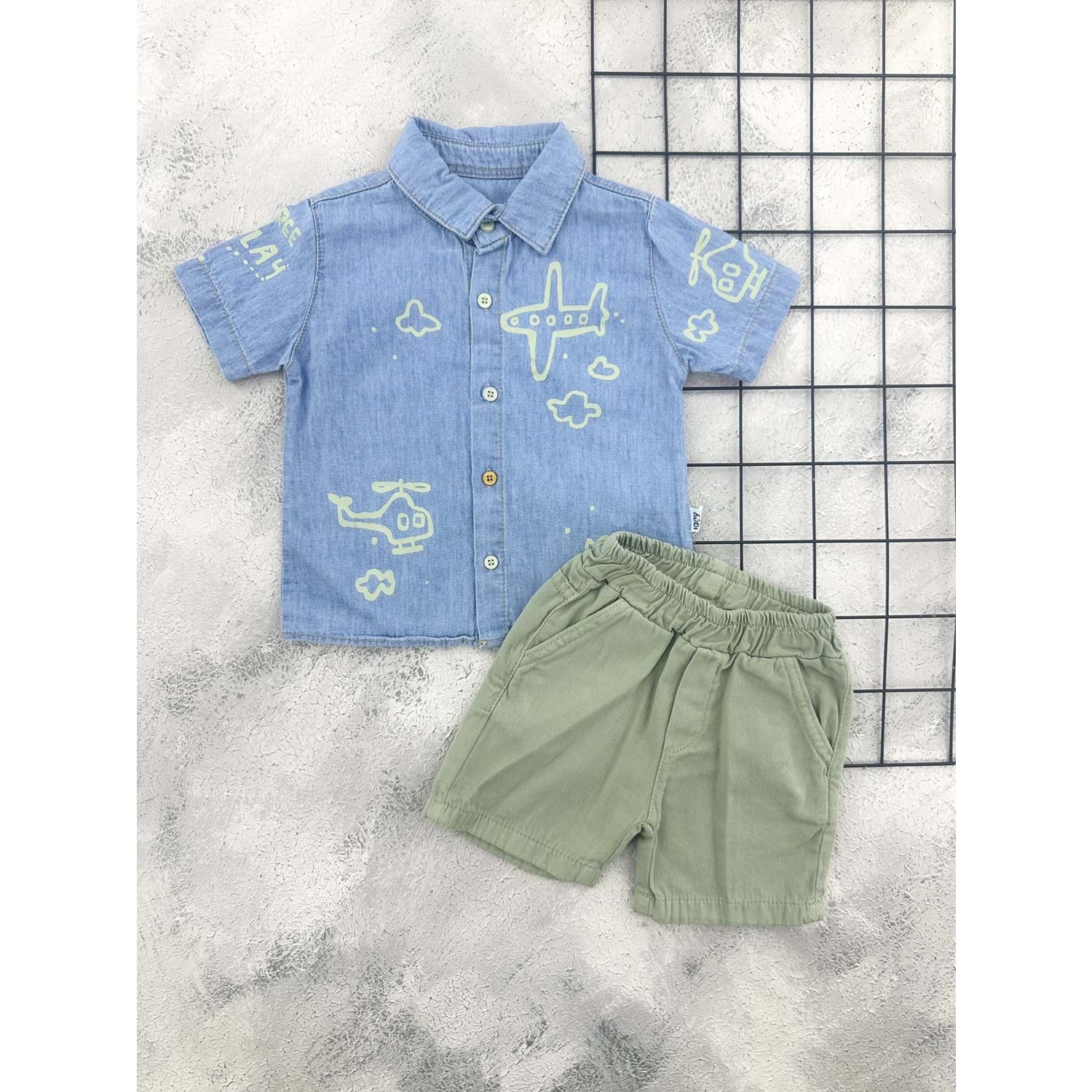 BEBİÇO 26110 KOT UÇAK GÖMLEK TAKIM - YEŞİL - 6-9 AY