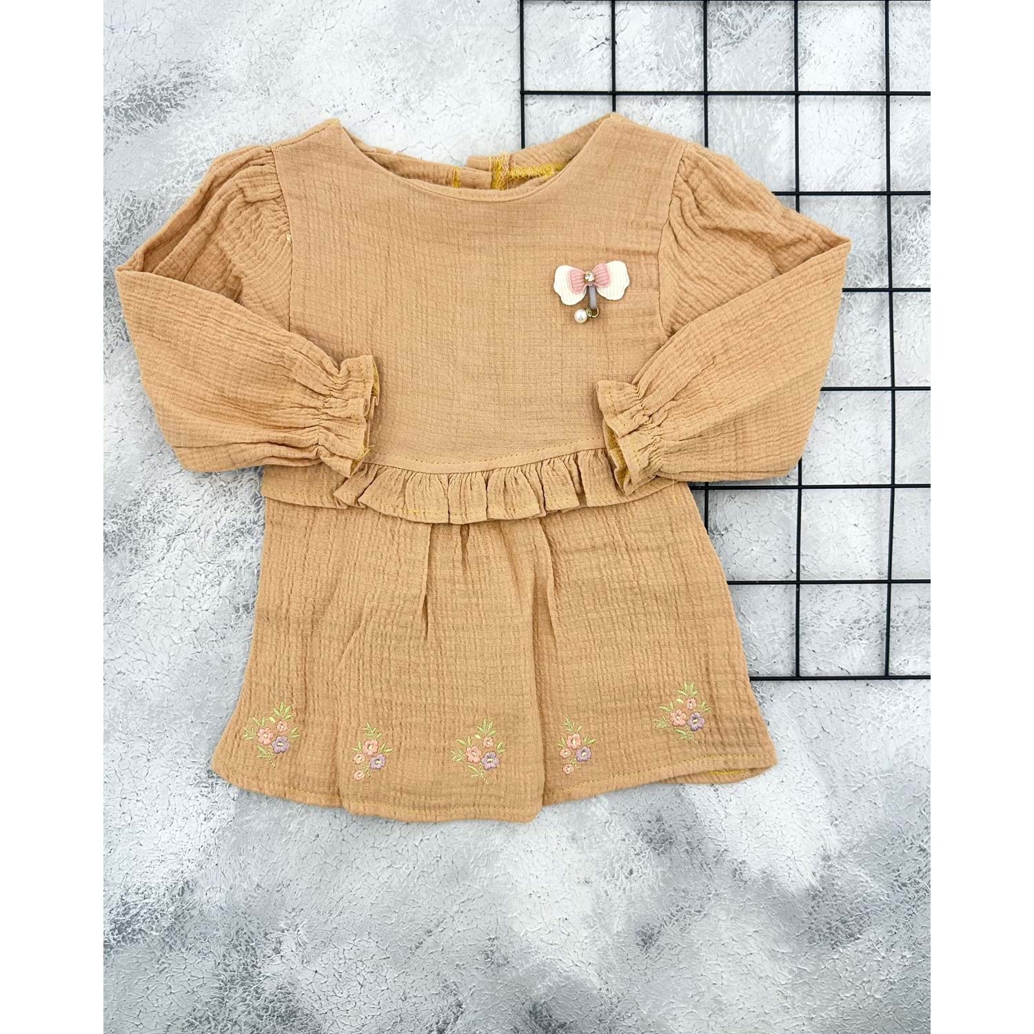 BG 5802 FİSTO YAKA MÜSLİN ELBİSE - KAHVE - 18-24 AY