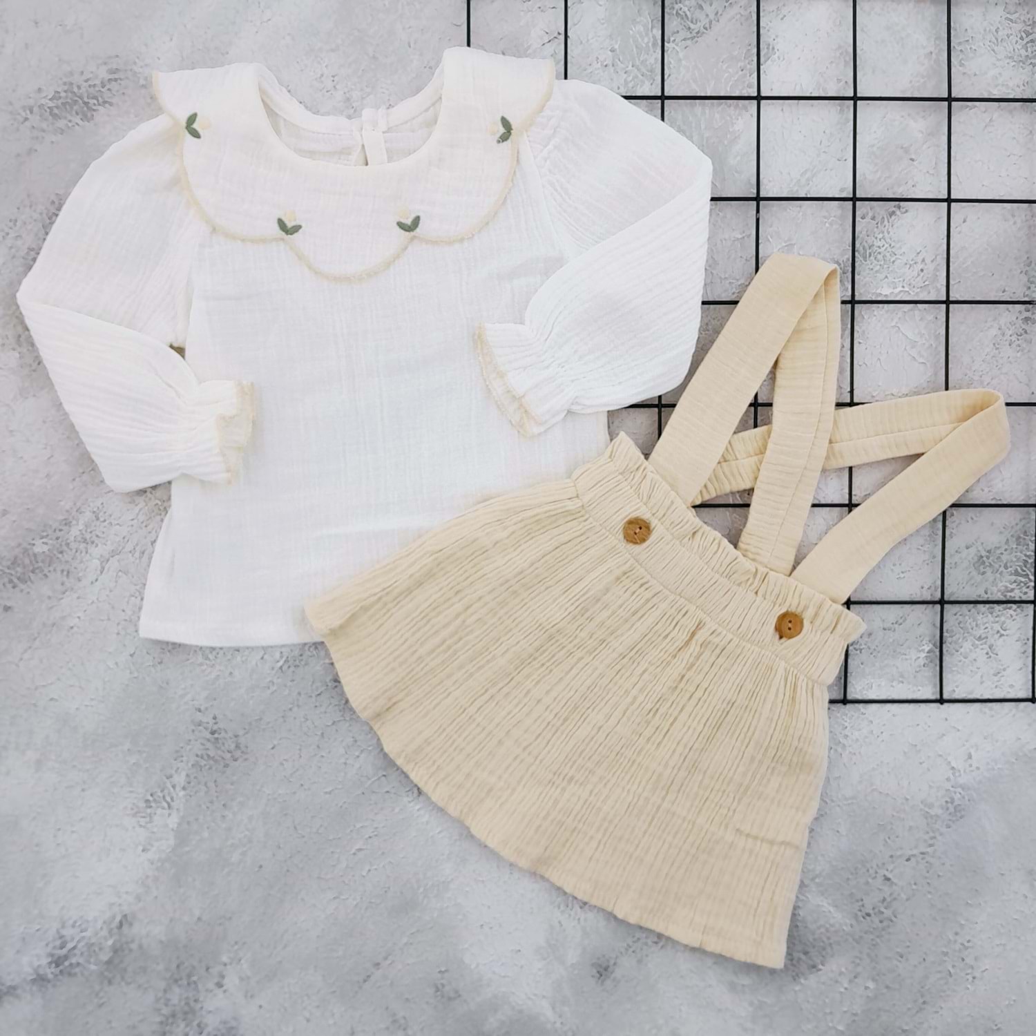 ÇİLEK 3143 MÜSLİN YAKA NAKIŞLI SALOPET - BEJ - 4 YAŞ