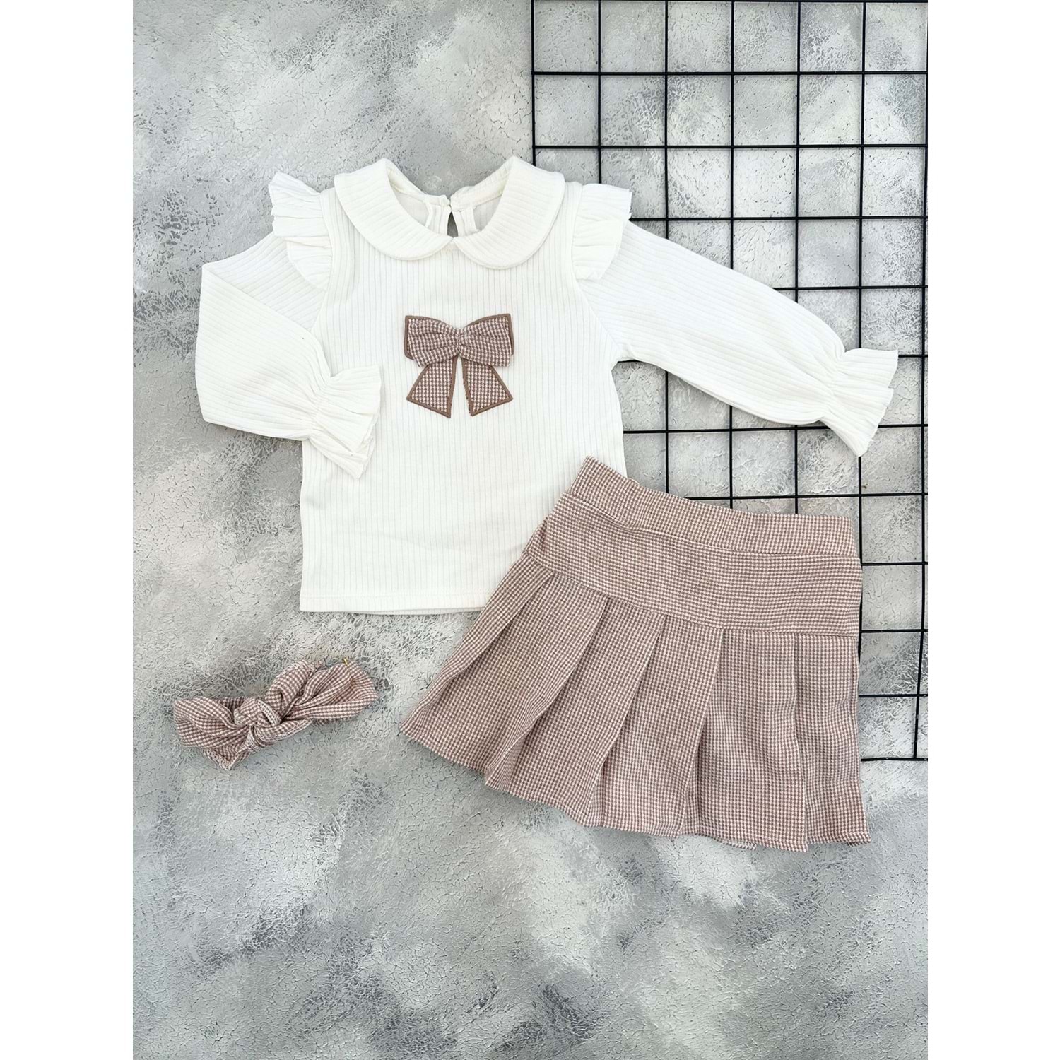 ÇİLEK 5134 KURDELE NAKIŞLI ELBİSE - PUDRA - 2 YAŞ