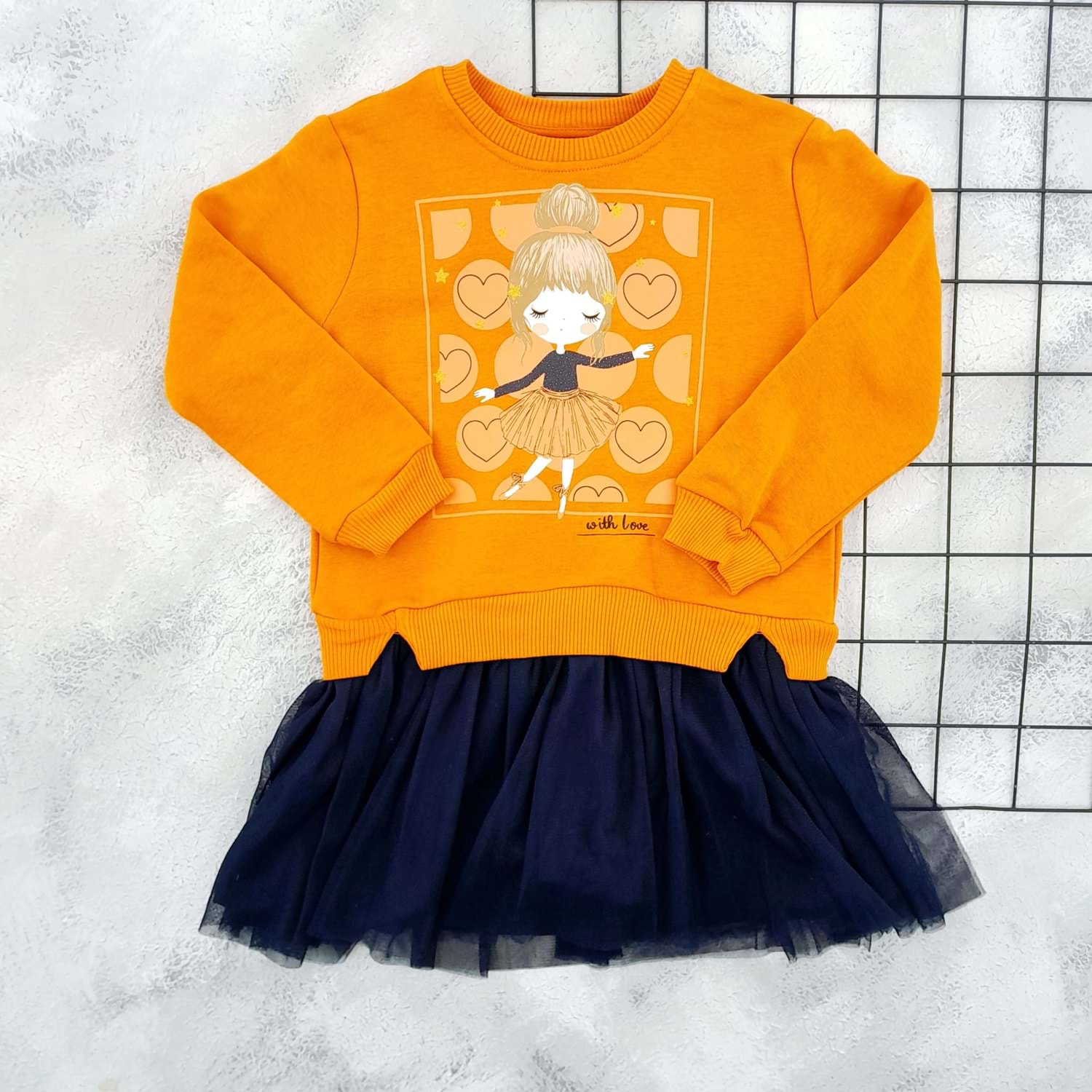 DMB 9712 BALECİ TÜLLÜ ETEK ELBİSE - TURUNCU - 8- 9 YAŞ