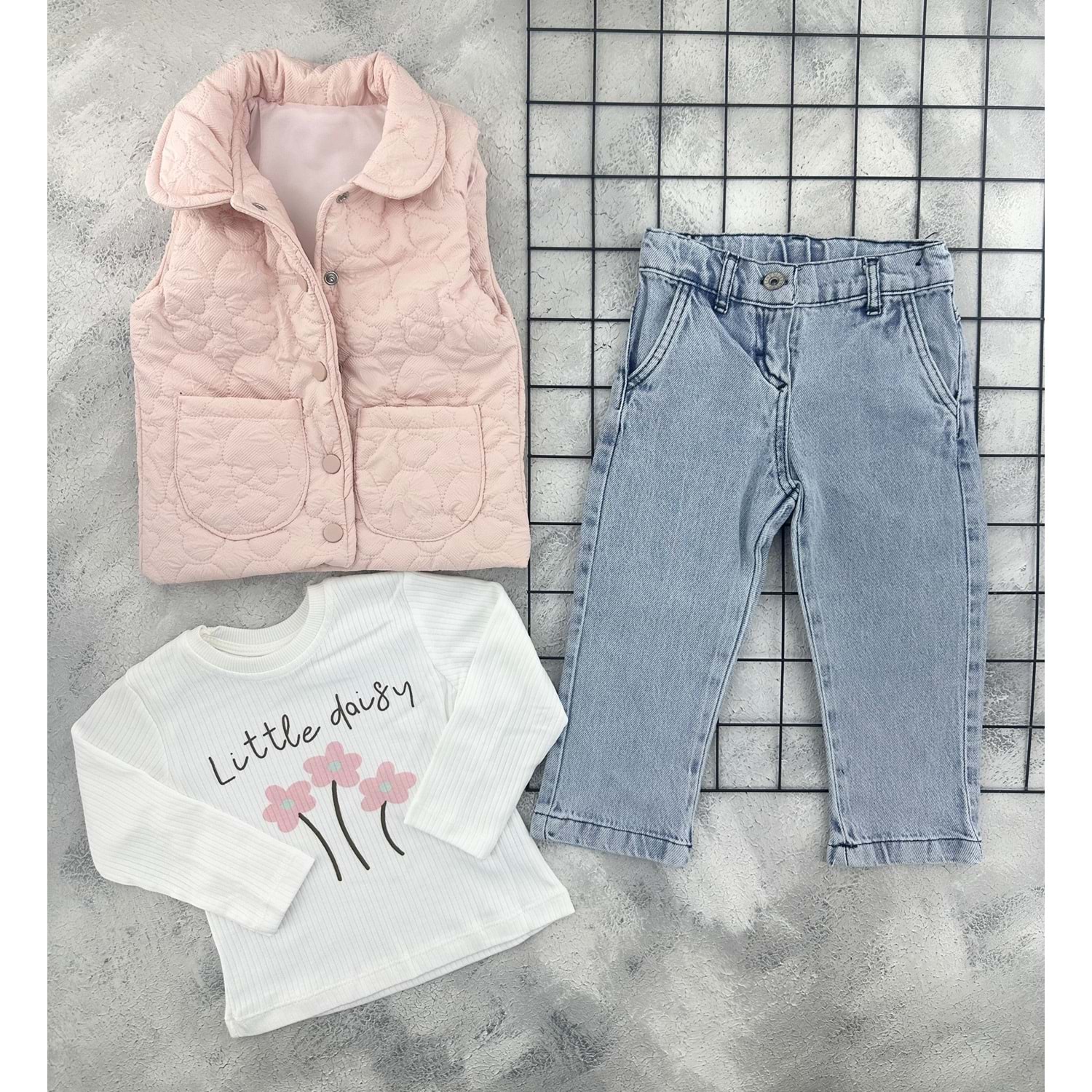 ERCAN 7199 ÇİÇEKLİ ŞİŞME YELEKLİ KOT TAKIM - SOMON - 2 YAŞ