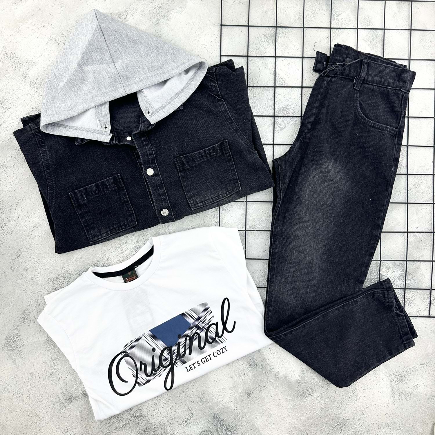 HOLA 90062 KAPÜŞONLU CEKET KOT TAKIM - SİYAH - 10 YAŞ