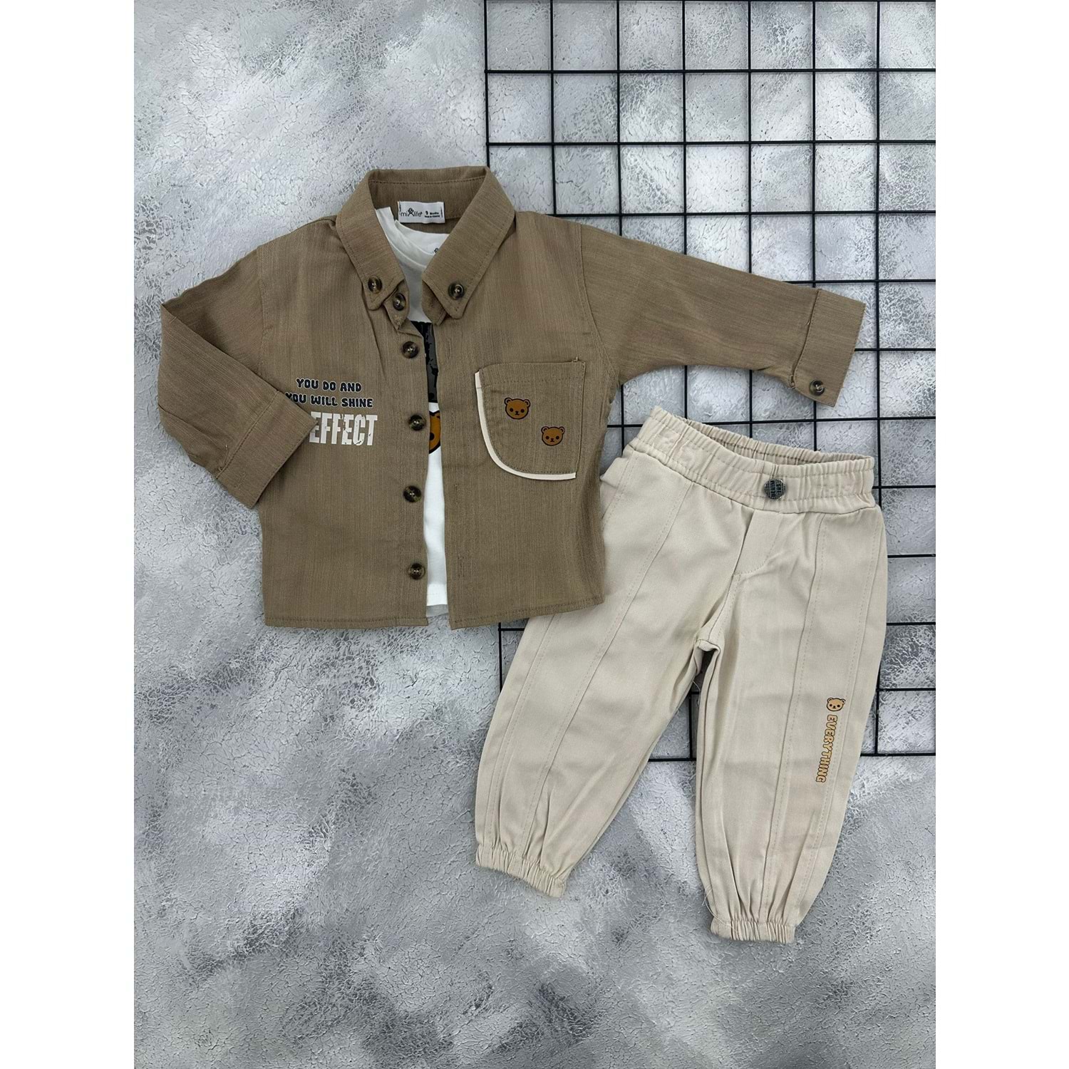 MİX LIFE 6401 AYI KAFALAR GÖMLEK TAKIM - KAHVE - 24 AY