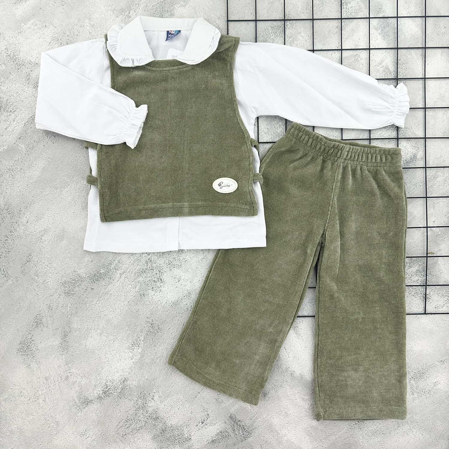 NAZAR 26046 ÜÇLÜ KADİFE TAKIM - YEŞİL - 4 YAŞ