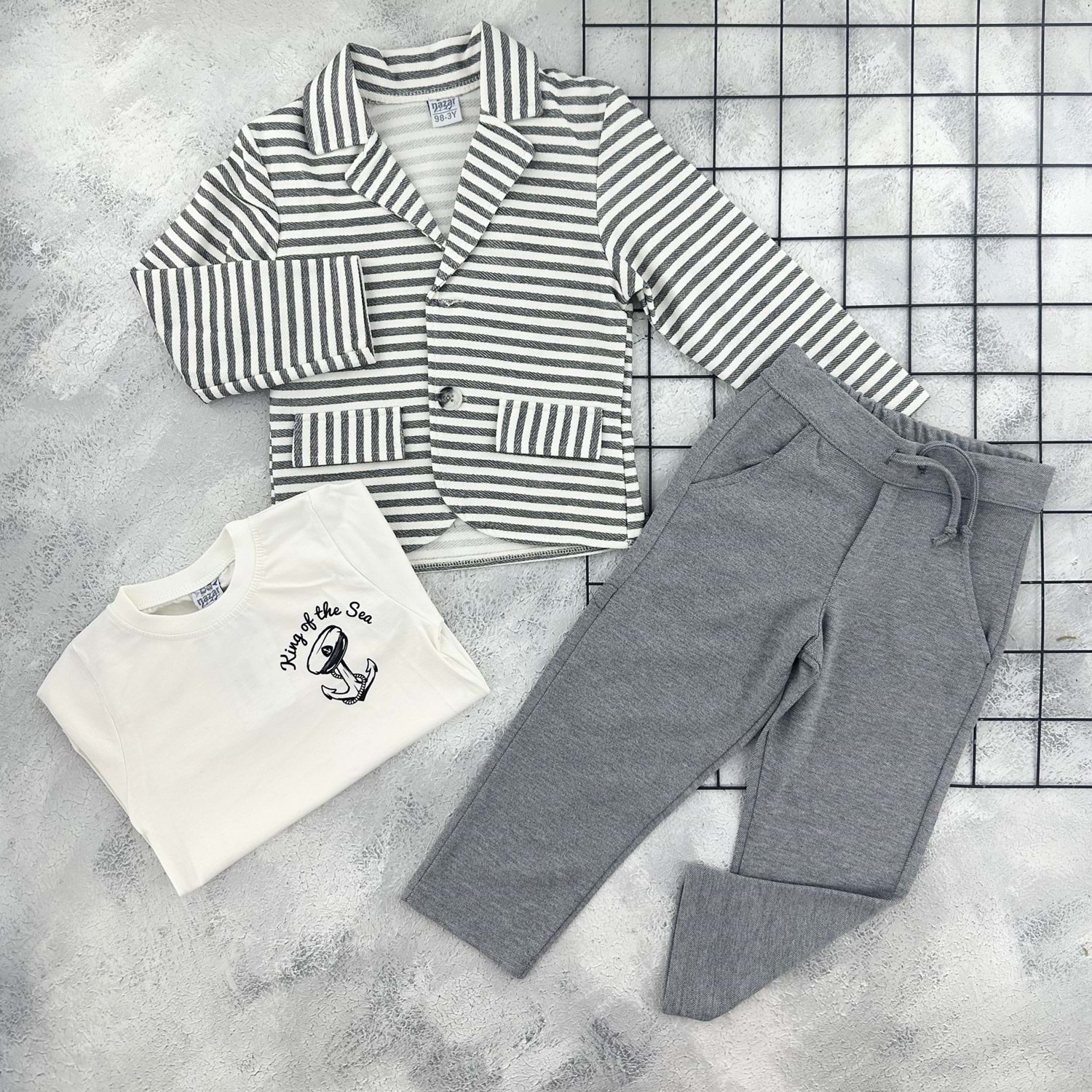 NAZAR 26100 ÇİZGİLİ BLAZER CEKETLİ TAKIM - FÜME - 3 YAŞ