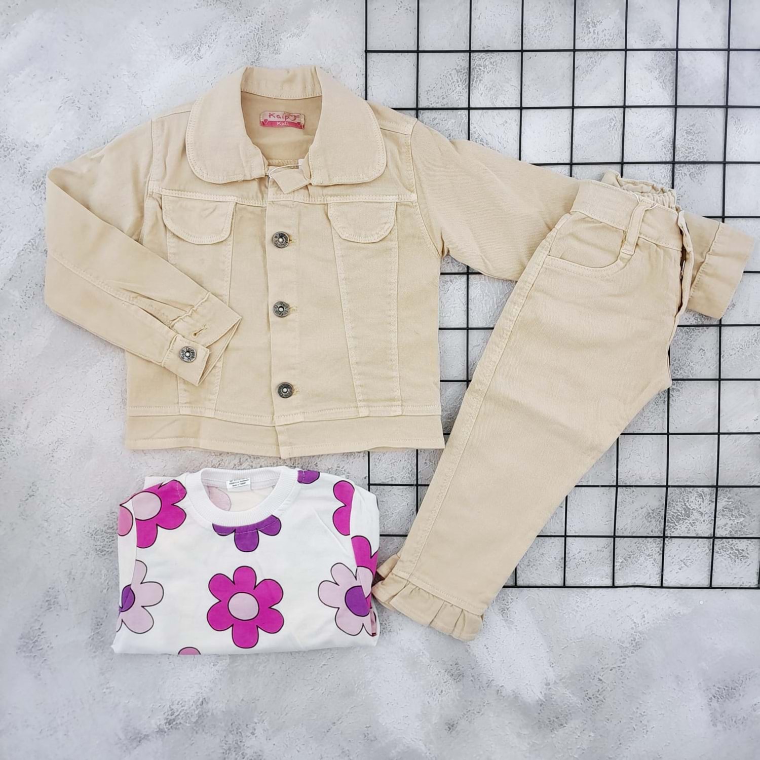 PAŞACAN 67180 ÇİÇEKLİ 3 LÜ KOT TAKIM - BEJ - 6-7 YAŞ