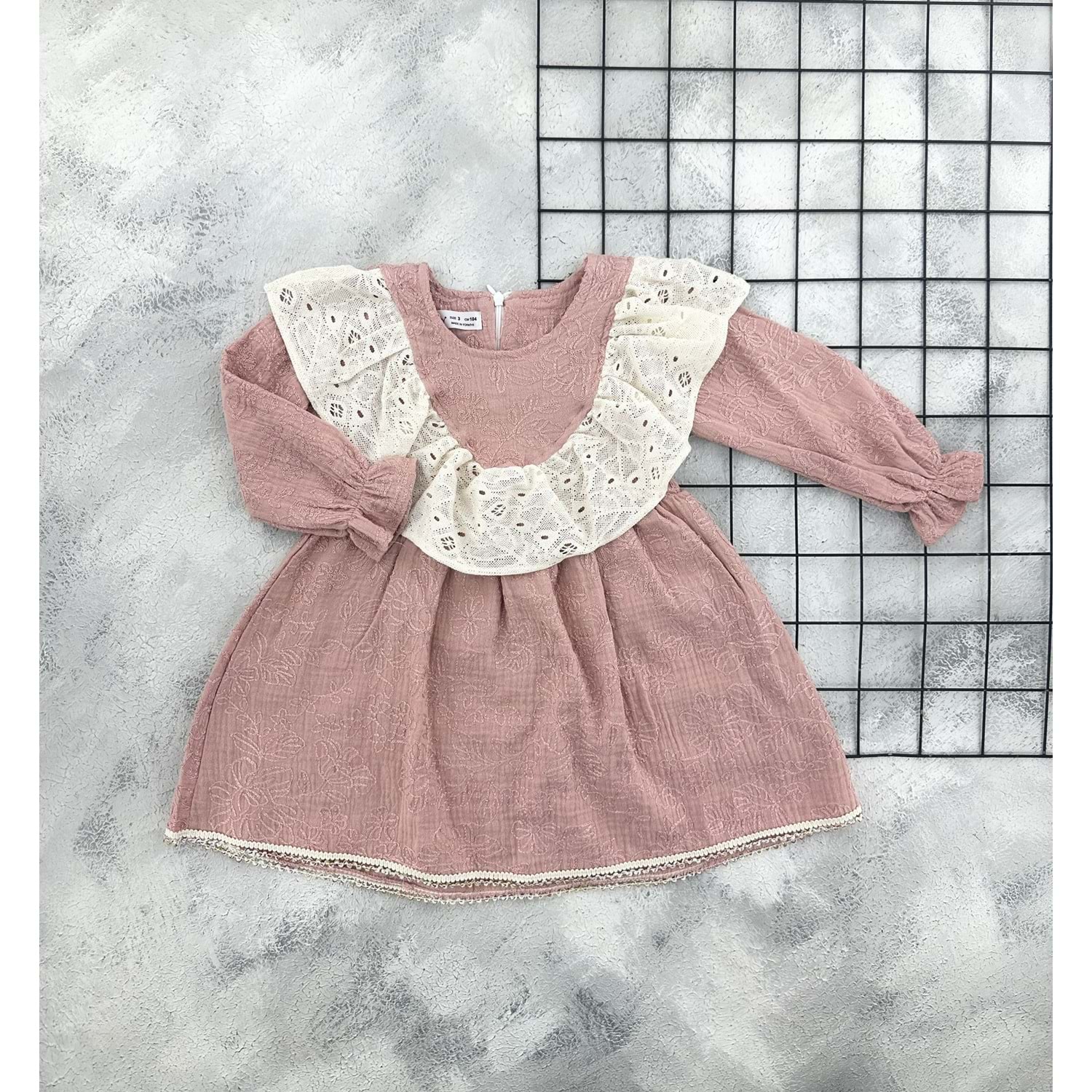 PERRY 6233 DANTEL DESENLİ MÜSLİN ELBİSE - MÜRDÜM - 3 YAŞ