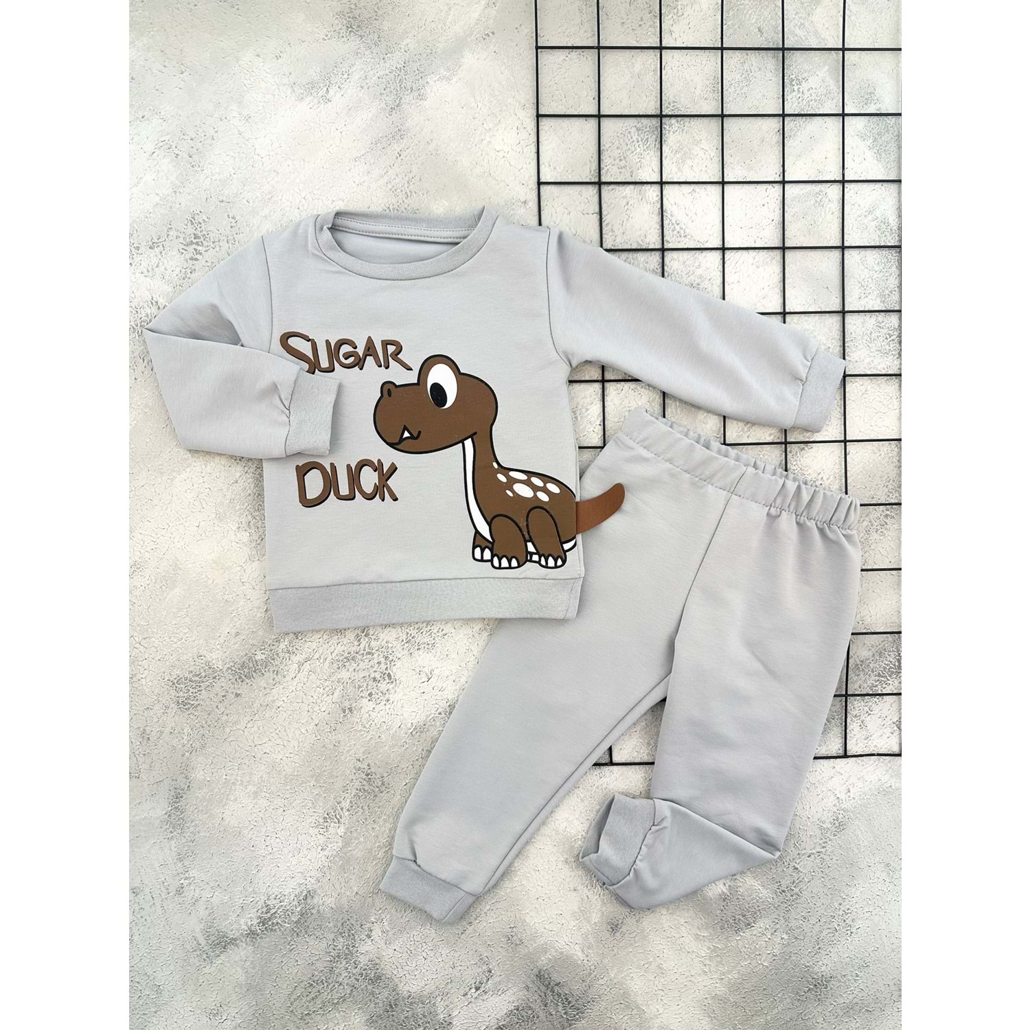 BAMBU 4522 DİNO BASKILI MEVSİMLİK TAKIM - GRİ - 4 YAŞ