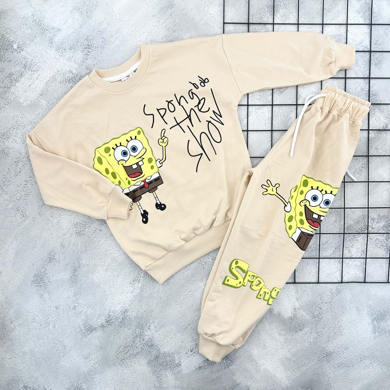 CİCİBOM 1943 SÜNGER BOB BASKILI MEVSİMLİK TAKIM - BEJ - 9 YAŞ