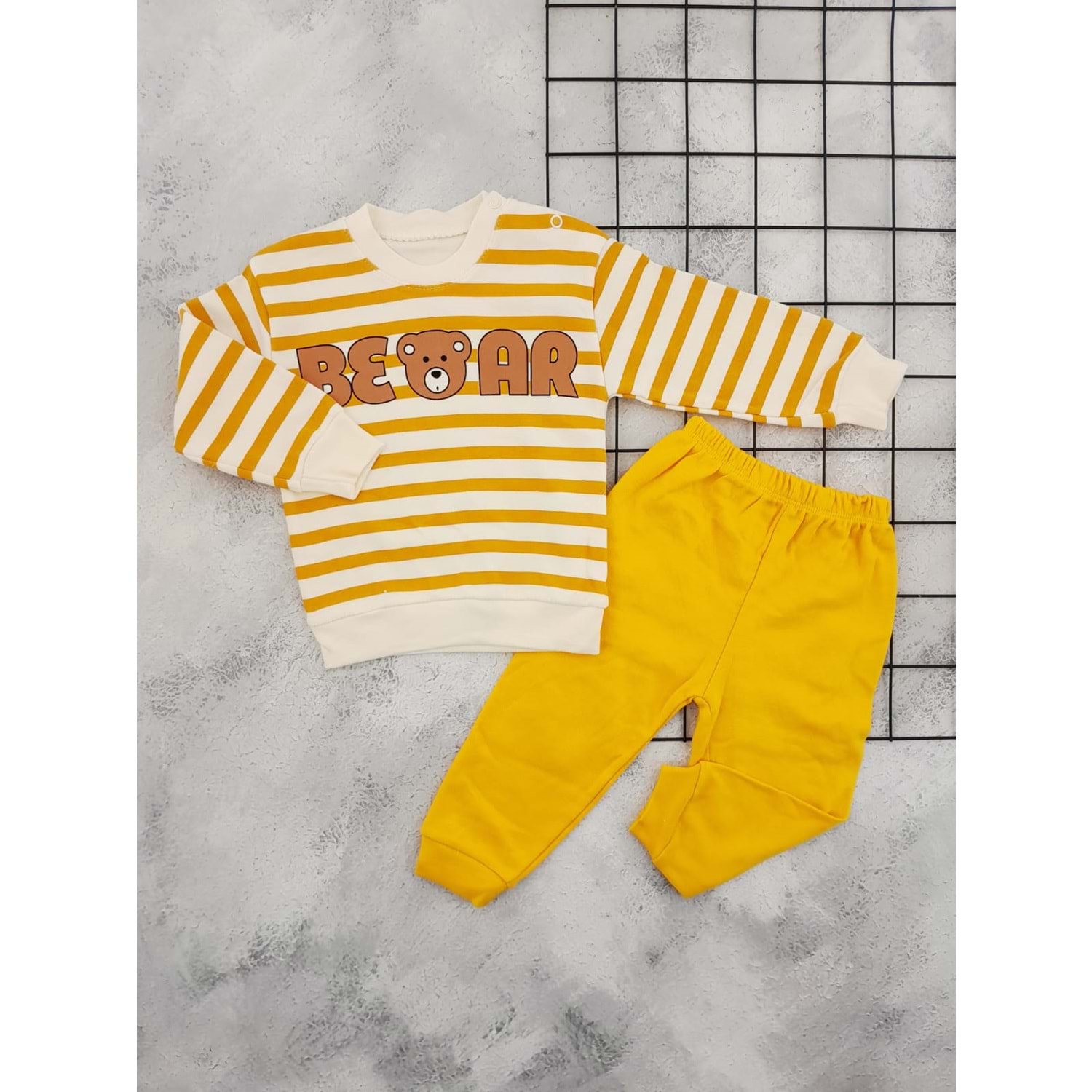 MİNİMUNDO 813 ÇİZGİLİ BEAR BASKILI MEVSİMLİK TAKIM - SARI - 9 AY