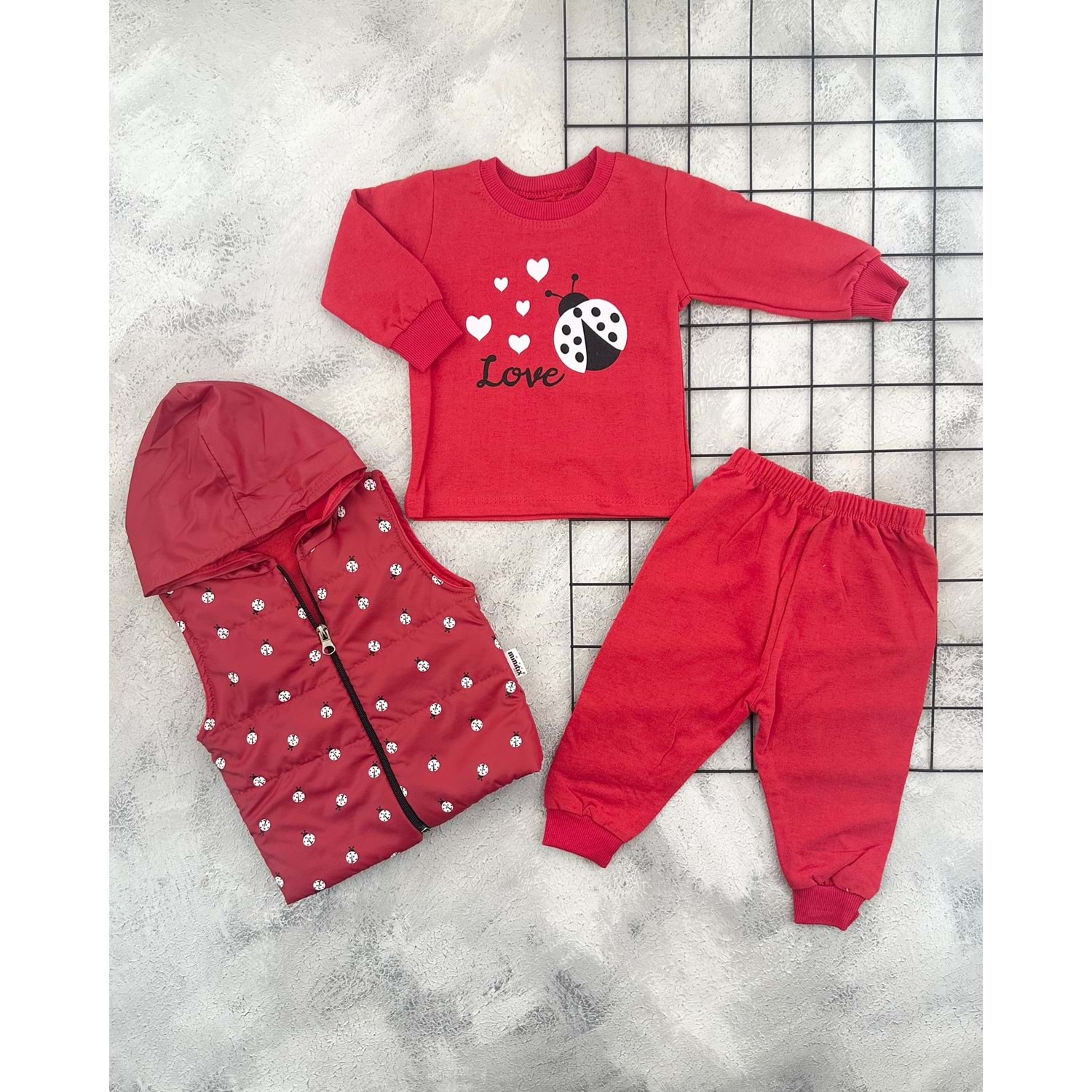 MİNİTİX 25441 UĞUR BÖCEĞİ ŞİŞME YELEK TAKIM - KIRMIZI - 12 AY