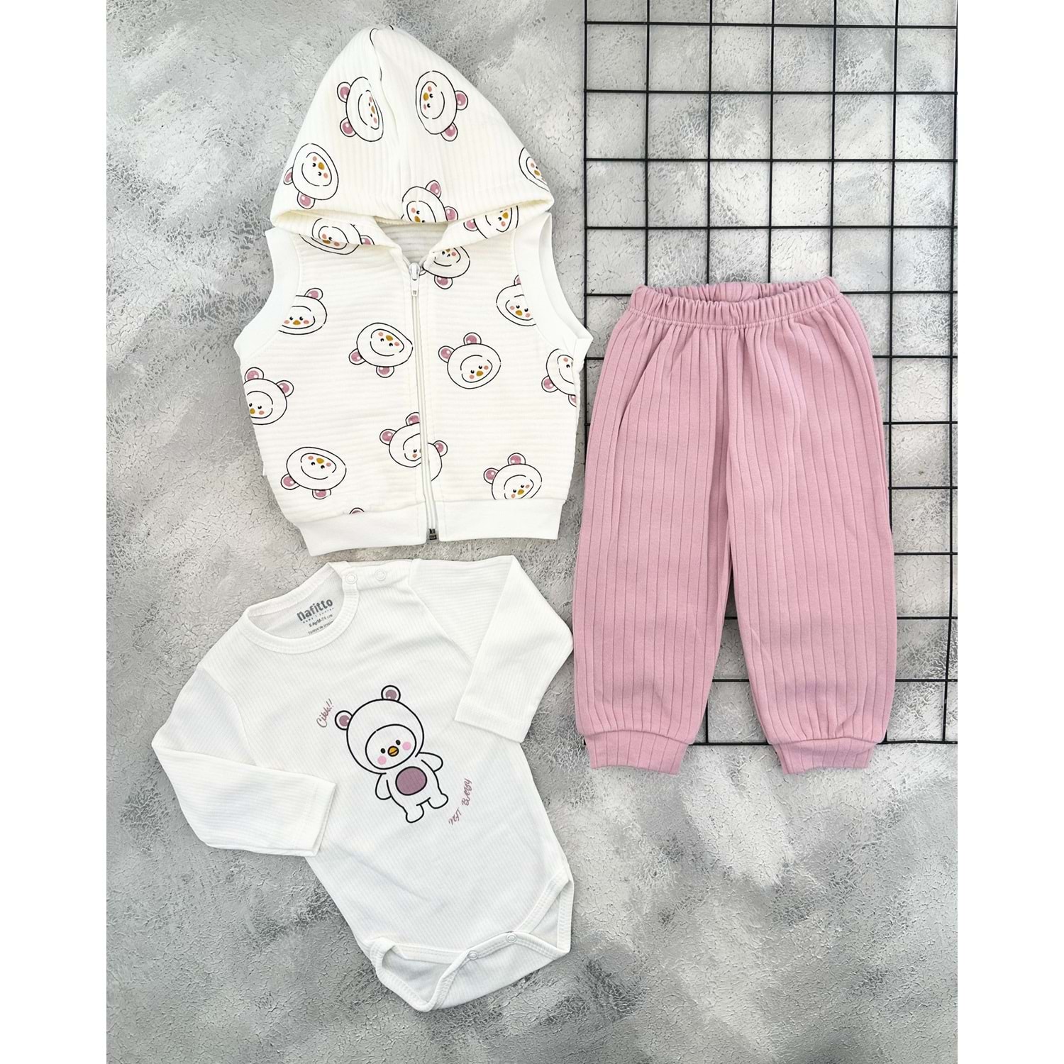 NAFİTTO 1473 ŞAPKALI CİVCİV 3 LÜ MEVSİMLİK TAKIM - MÜRDÜM - 18 AY
