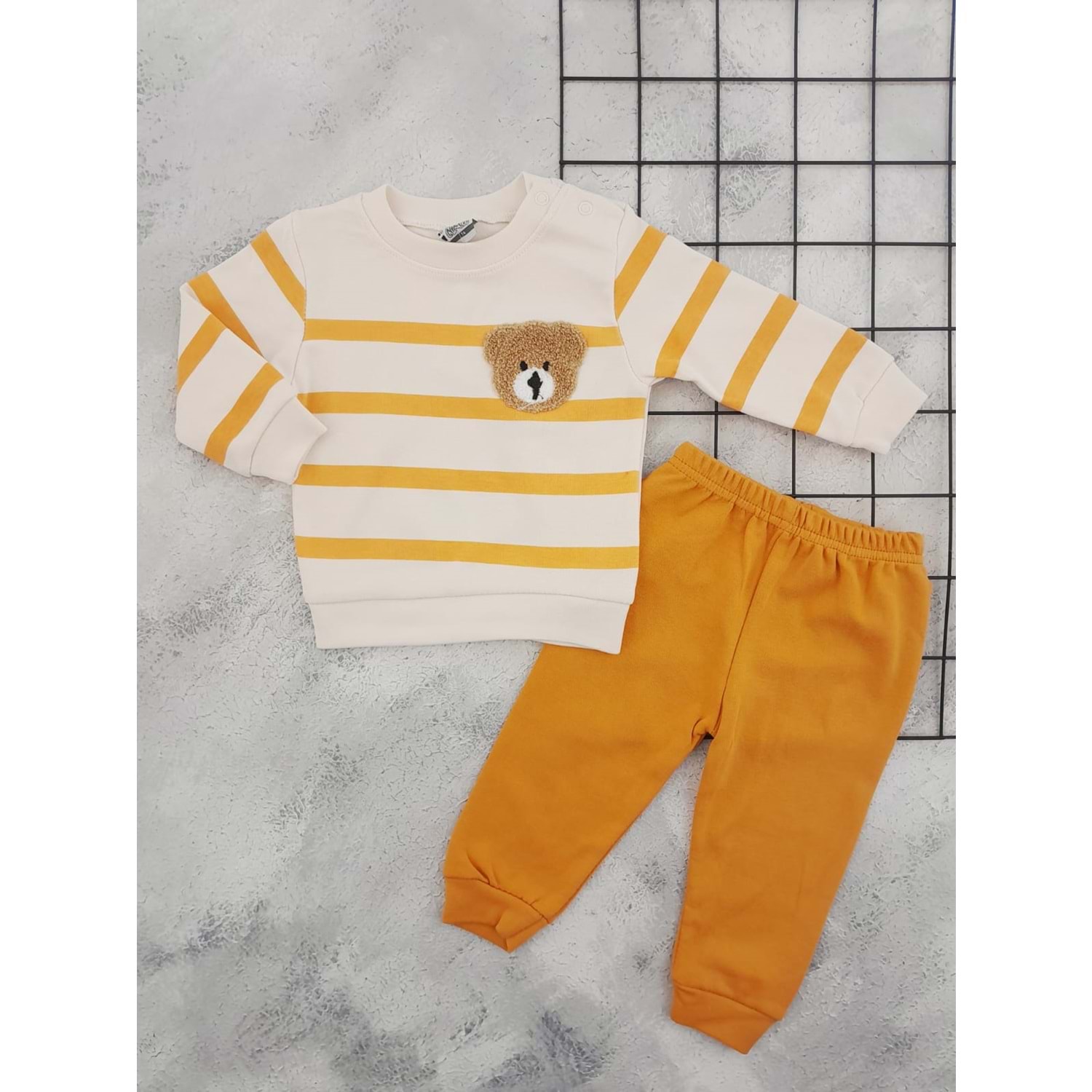 NİKUBY 45087 ÇİZGİLİ SÜZENE AYICIK MEVSİMLİK TAKIM - TURUNCU - 9 AY