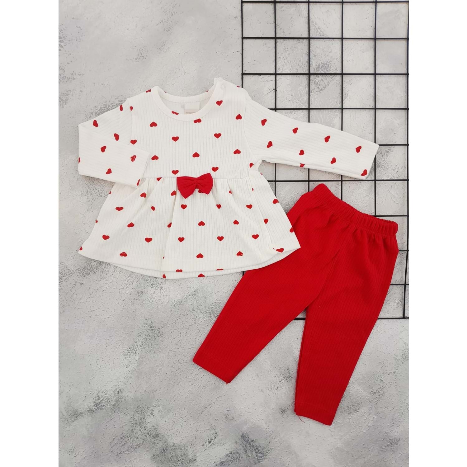 NİKUBY 46287 MİNİK KALP BASKILI MEVSİMLİK TAKIM - KIRMIZI - 6 AY