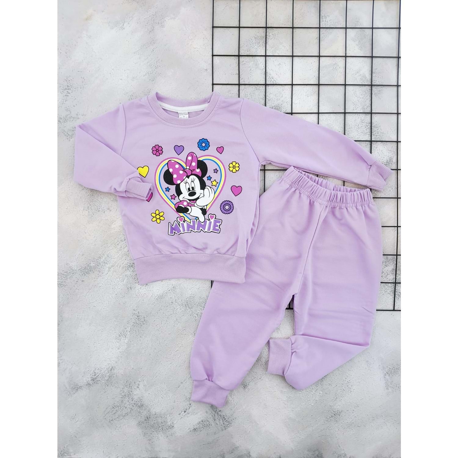 TRGT 2829 MİNNİE BASKILI MEVSİMLİK TAKIM - LİLA - 3 YAŞ
