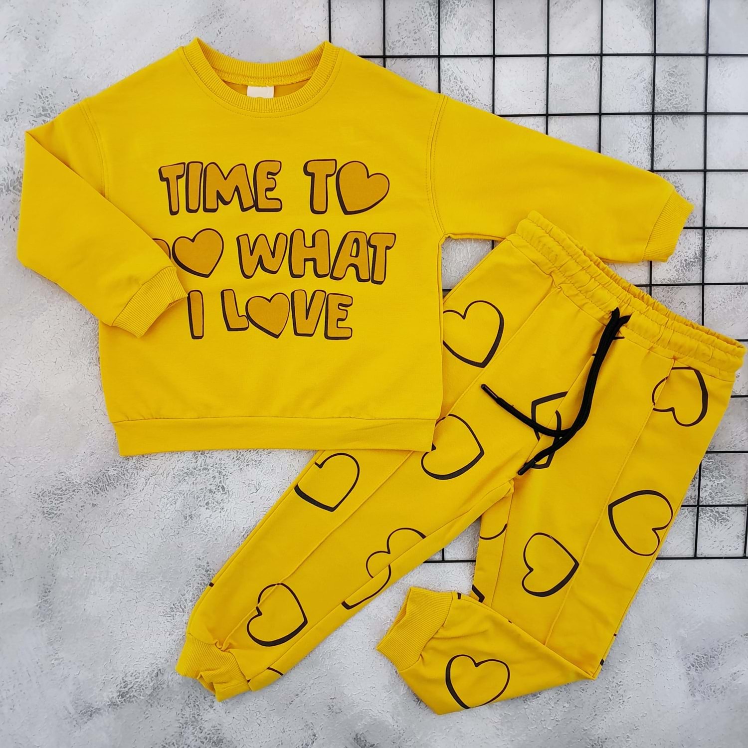 VIA GİRLS 9067 KALP BASKILI MEVSİMLİK TAKIM - HARDAL - 6-7 YAŞ