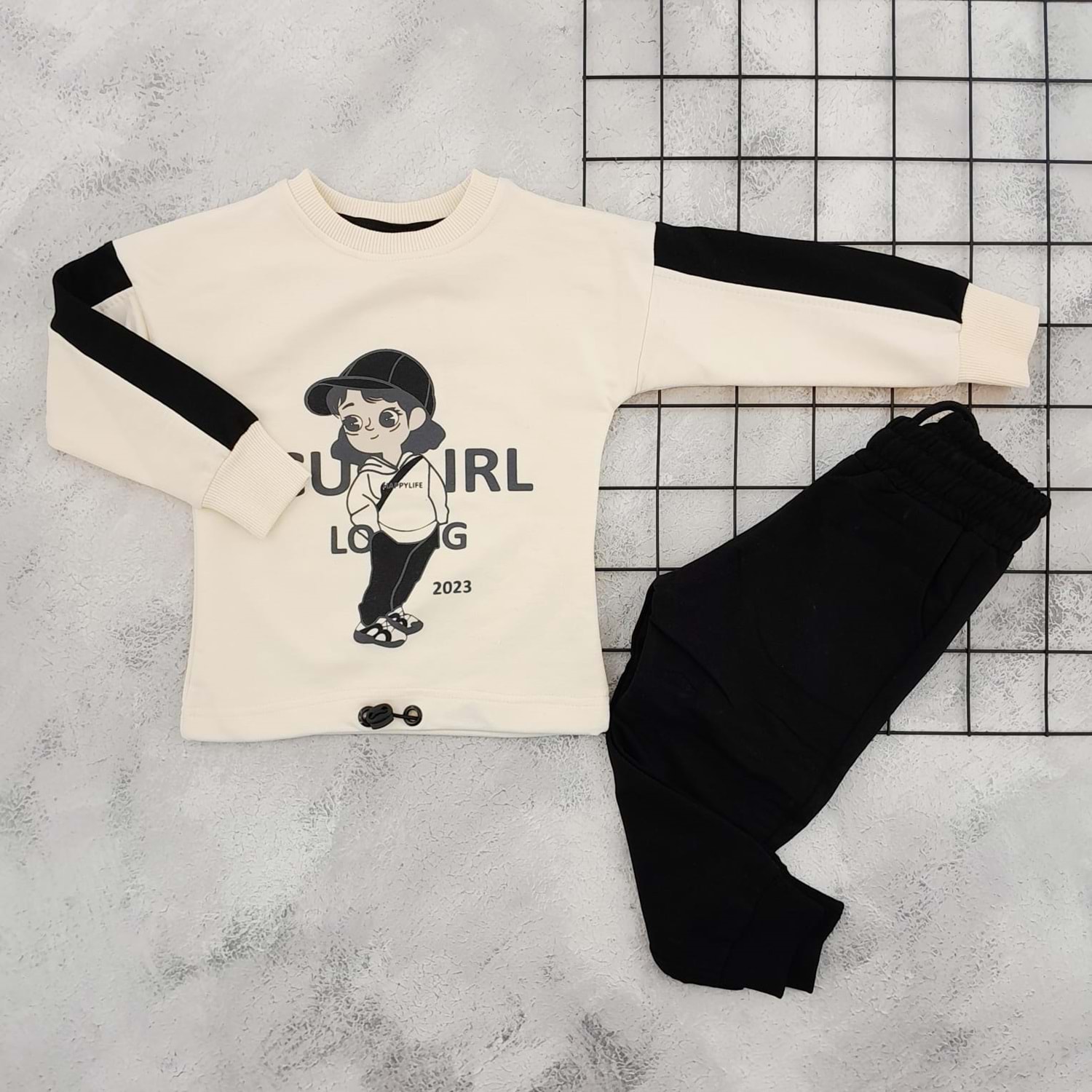 YUKO 10010 ŞAPKALI KIZ BASKILI MEVSİMLİK TAKIM - SİYAH - 2 YAŞ