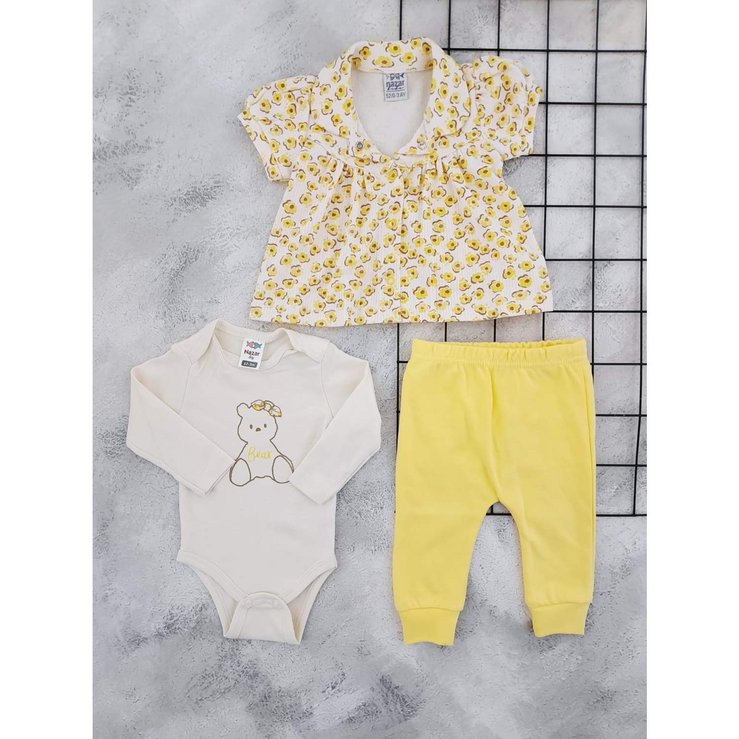 NAZAR 050 ÇİÇEK BASKILI 3 LÜ MEVSİMLİK TAKIM - SARI - 9 AY
