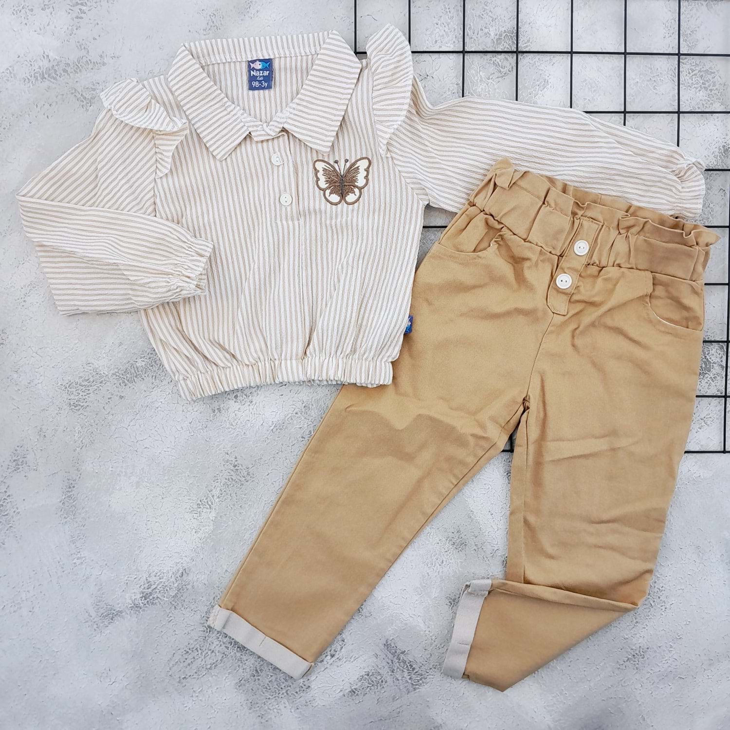NAZAR 24029 KELEBEK NAKIŞLI ÇİZGİLİ MEVSİMLİK TAKIM - BEJ - 3 YAŞ