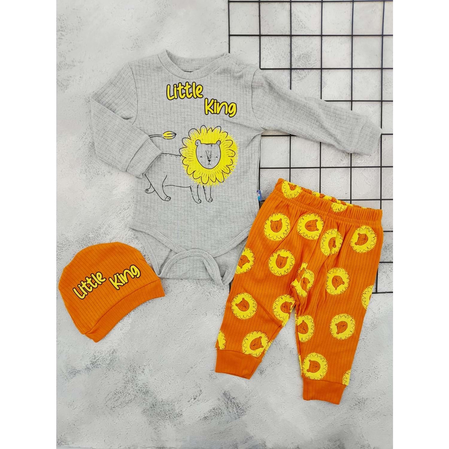 NAZAR 24540 ASLAN BASKILI 3 LÜ TAKIM - GRİ - 12 AY