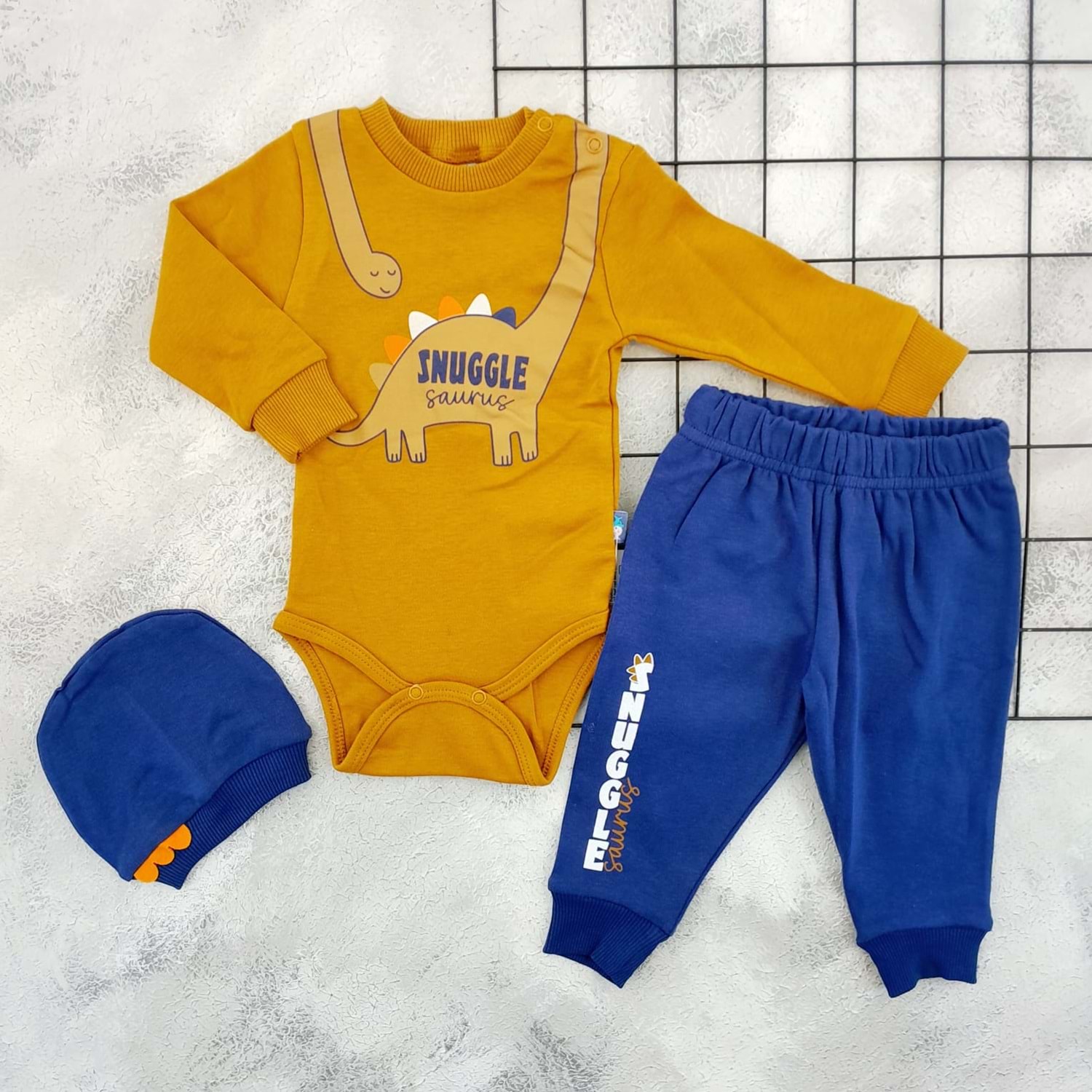 NAZAR 24574 DİNOZOR BASKILI 3 LÜ MEVSİMLİK TAKIM - HARDAL - 18 AY