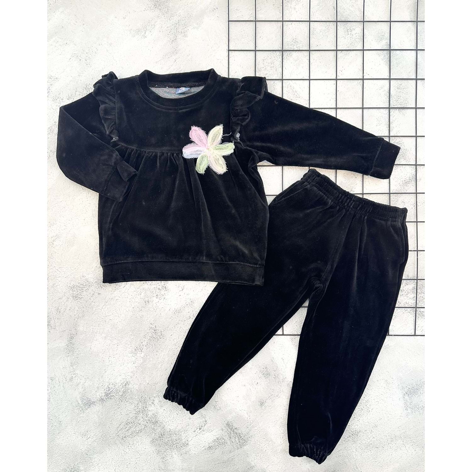 NAZAR 25973 ÇİÇEK NAKIŞLI KADİFE TAKIM - SİYAH - 4 YAŞ