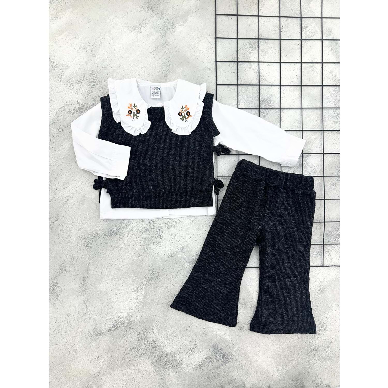 NAZAR 26001 GÖMLEK YAKA TRİKO 3 LÜ TAKIM - SİYAH - 9 AY