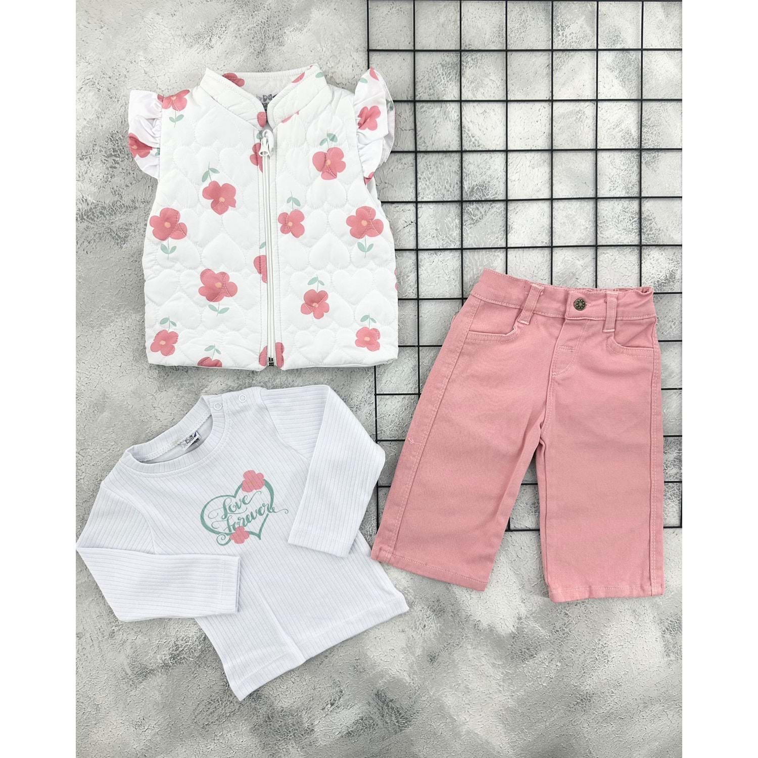 NAZAR 26054 ÇİÇEKLİ KAPİTONE YELEK KOT TAKIM - PEMBE - 24 AY