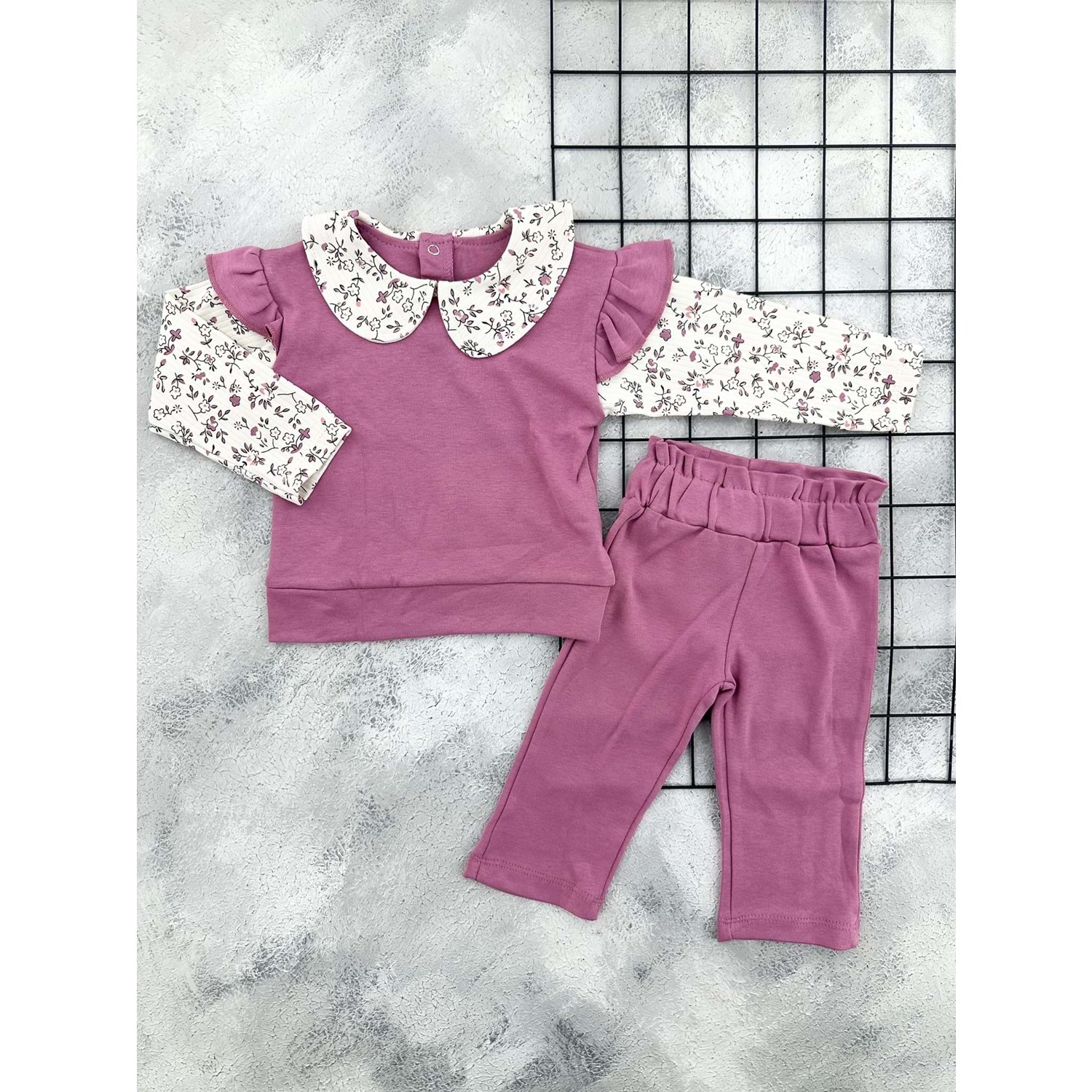 NAZAR 26132 YAKALI ÇİÇEK BASKILI MEVSİMLİK TAKIM - MÜRDÜM - 9 AY