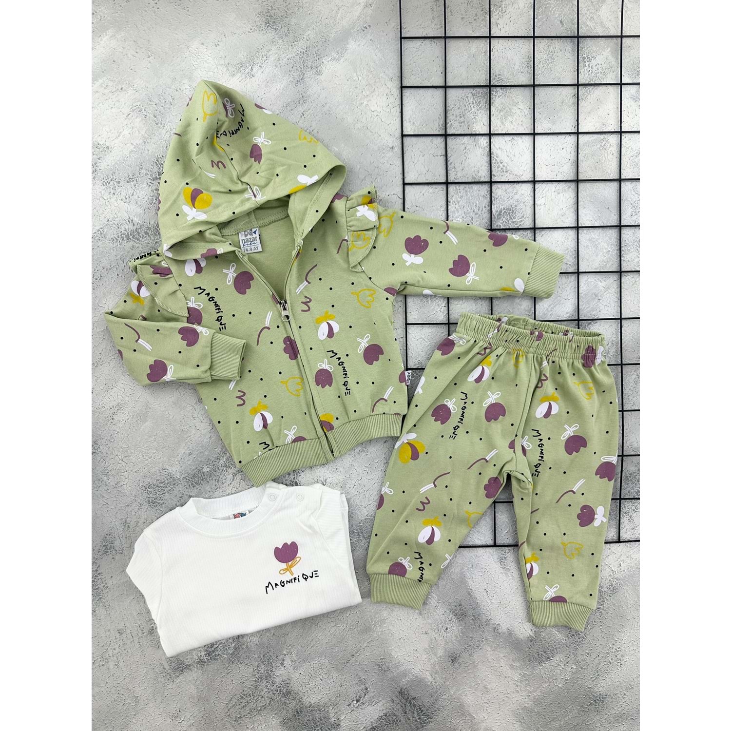 NAZAR 26209 LALE BASKILI MEVSİMLİK TAKIM - YEŞİL - 12 AY