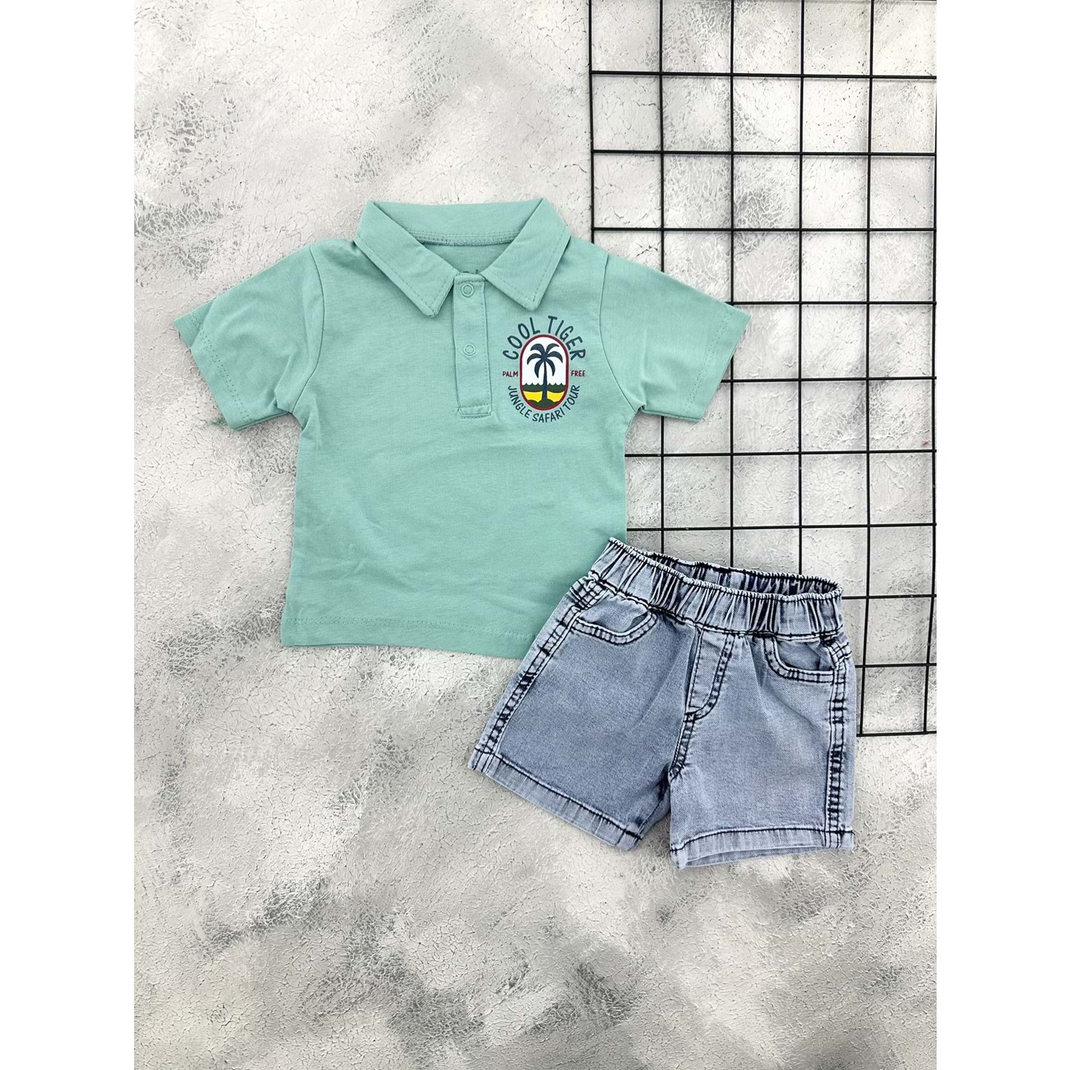 NAZAR 26285 COOL TİGER YAKALI KOT ŞORT TAKIM - YEŞİL - 24 AY