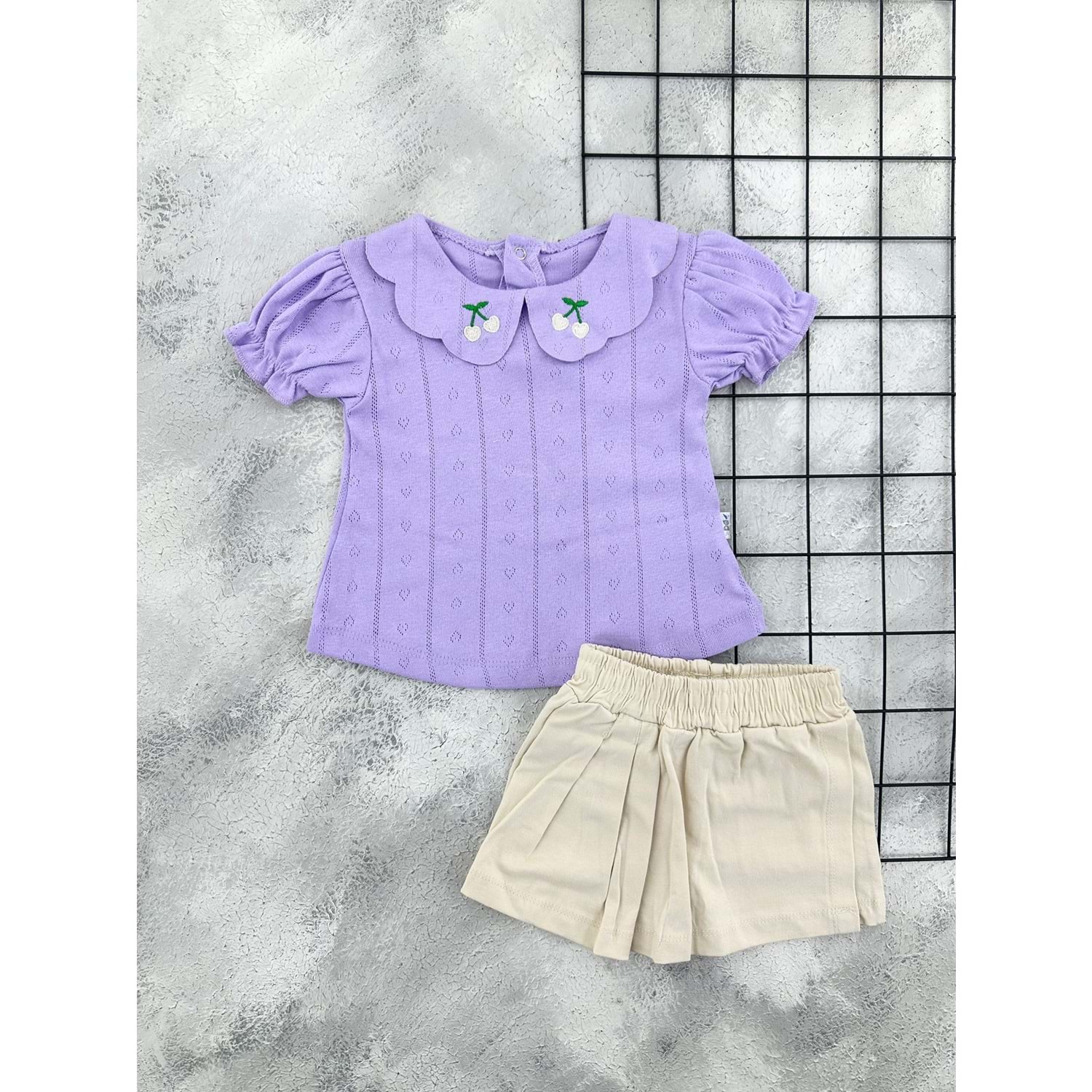NAZAR 26338 KİRAZ NAKIŞ YAKA ŞORT TAKIM - LİLA - 9 AY